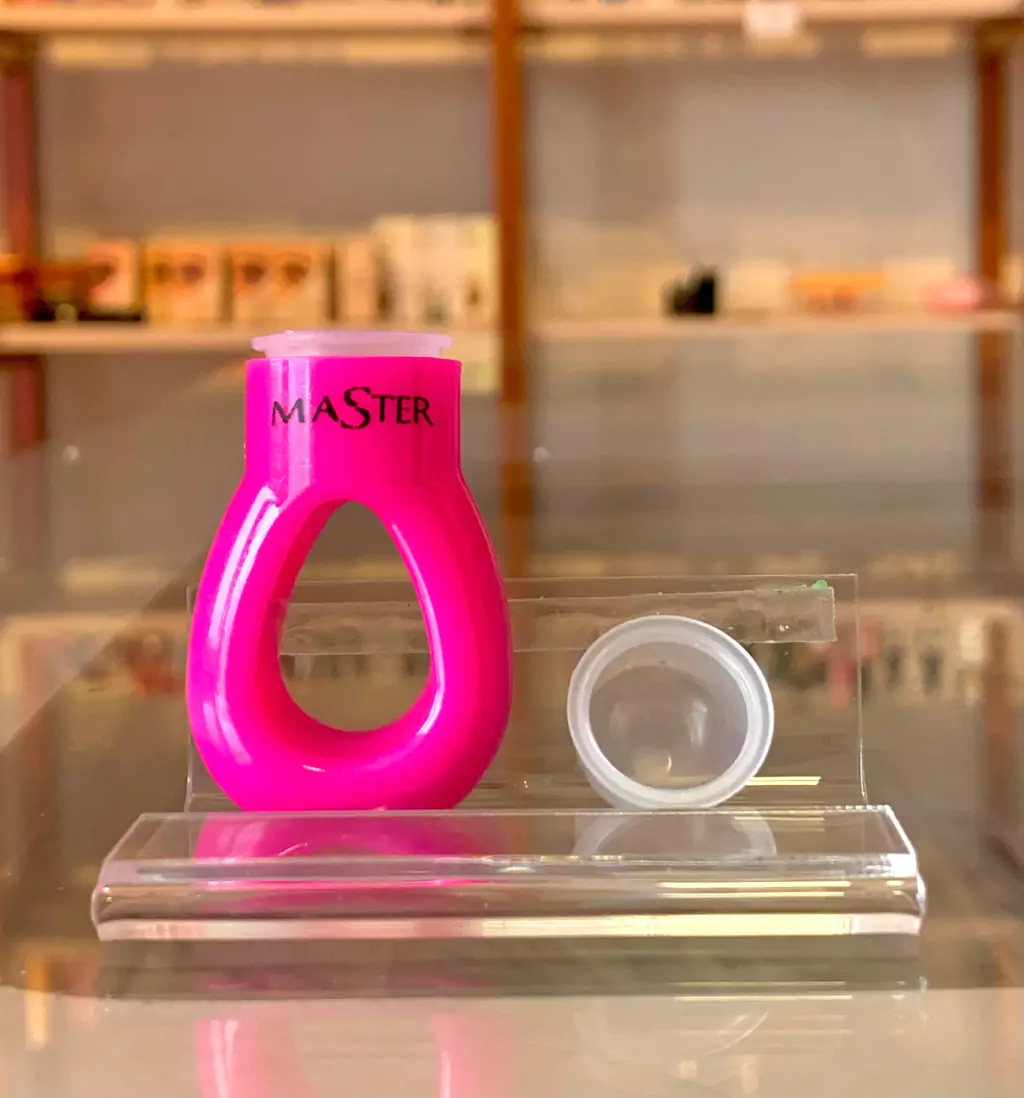 Anel porta batoque em acrílico + 2 Batoques plásticos Facilita a mistura e a aplicação da henna no design de sobrancelhas e a aplicação de pigmentos na maquiagem definitiva. Medidas aproximada dos batoques: diâmetro :1,6cm - altura:1,1 cm .