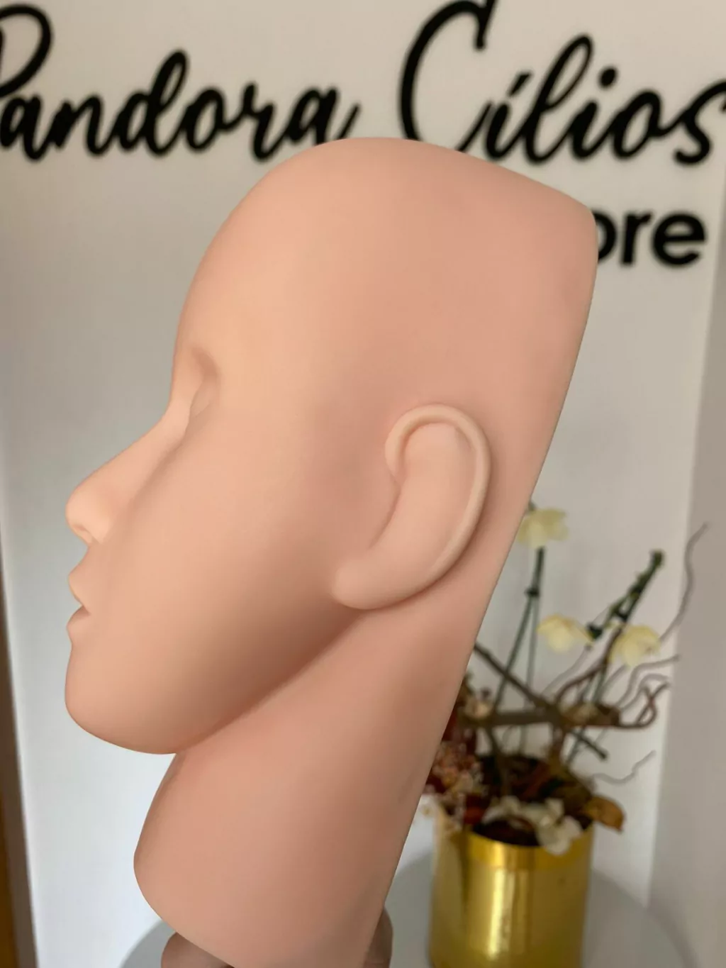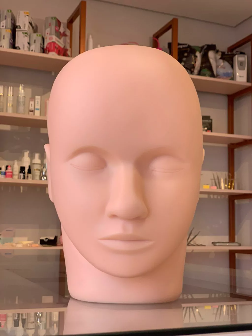 Cabeça modelo 100% silicone para treino em Micro pigmentação, maquiagens e cílios postiços.