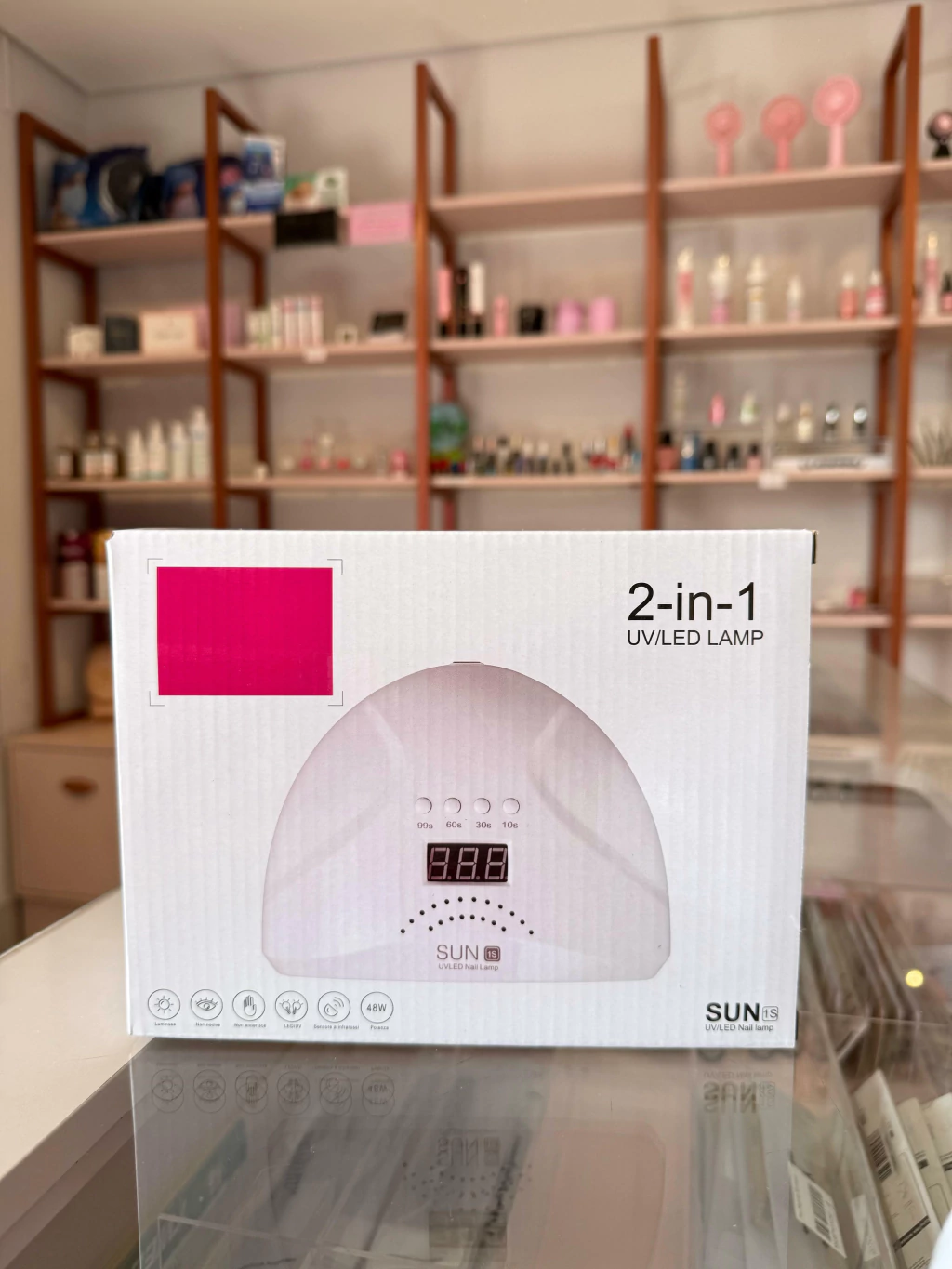 A Cabine Sun 1s é perfeita para quem procura o melhor custo benefício, possui um designer elegante, compacto e leve para o manuseio e transporte. Com um ótimo desempenho a Cabine Sun 1s conta com 30 leds/uv, sensor de detecção automático e temporizadores onde o primeiro a contagem vai de 0s a 120s (iniciando com 24w e chegando a 48w), 90s, 60s e 30s. Recomendado para a secagem de unhas em gel, acrigel, fibra, porcelana, e ideal para o uso profissional ou doméstico, podendo ser usado para as unhas das mãos e dos pés! ESPECIFICAÇÕES Potência: 24w a 48w Tensão: 110V-220V (Bivolt) Led: 30leds/uv Cor: Branco/rosa DIMENSÕES Altura: 8cm Largura: 20cm Comprimento: 15cm Comprimento do fio: 90cm Peso: 300g Itens Inclusos: 01 CABINE, 01 FONTE.