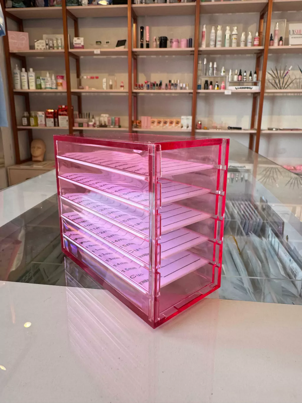 Lash Box Porta Cílios é o produto perfeito para quem busca manter os fios seguros e longe de poeira. Possui guias pré-marcadas facilitando o armazenamento dos chicotes e diferenciando as fileiras com tamanhos, além de serem divididos em 5 bandejas e ser produzido em acrílico transparente para melhor visualização.