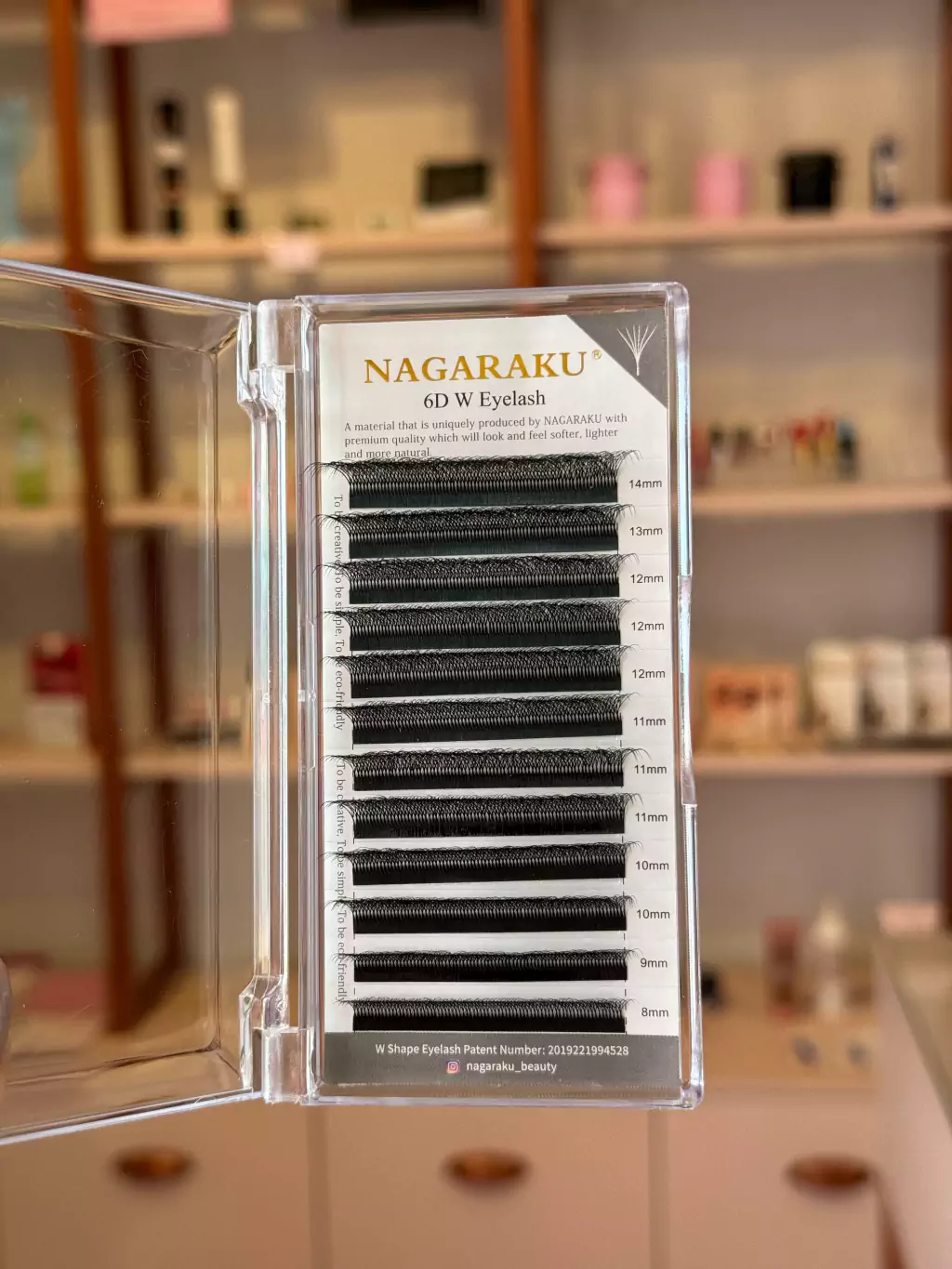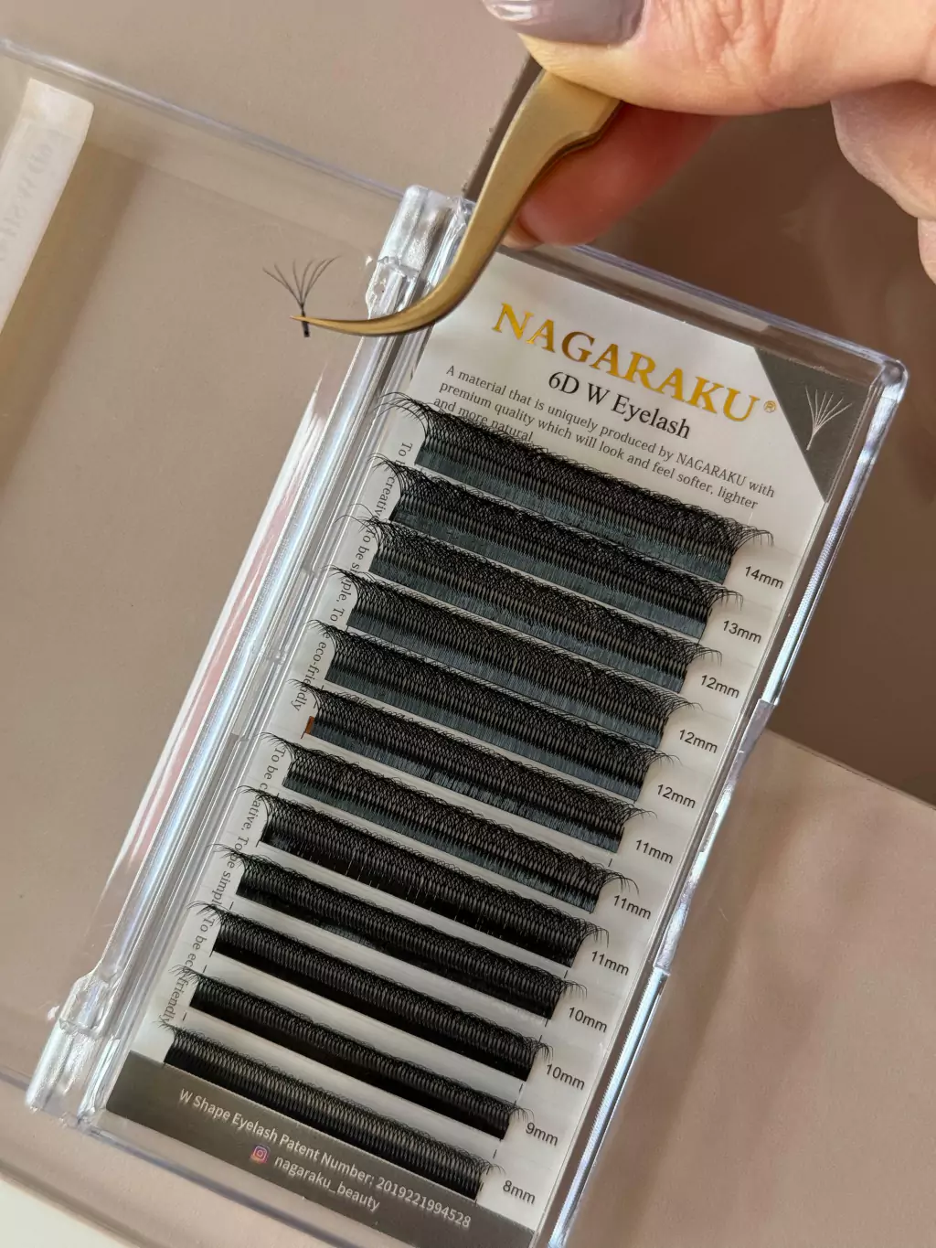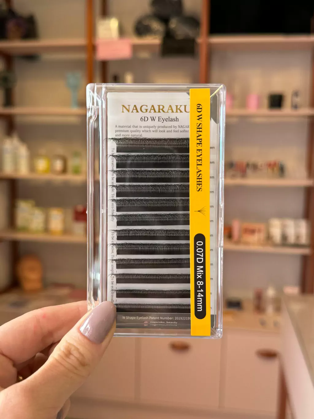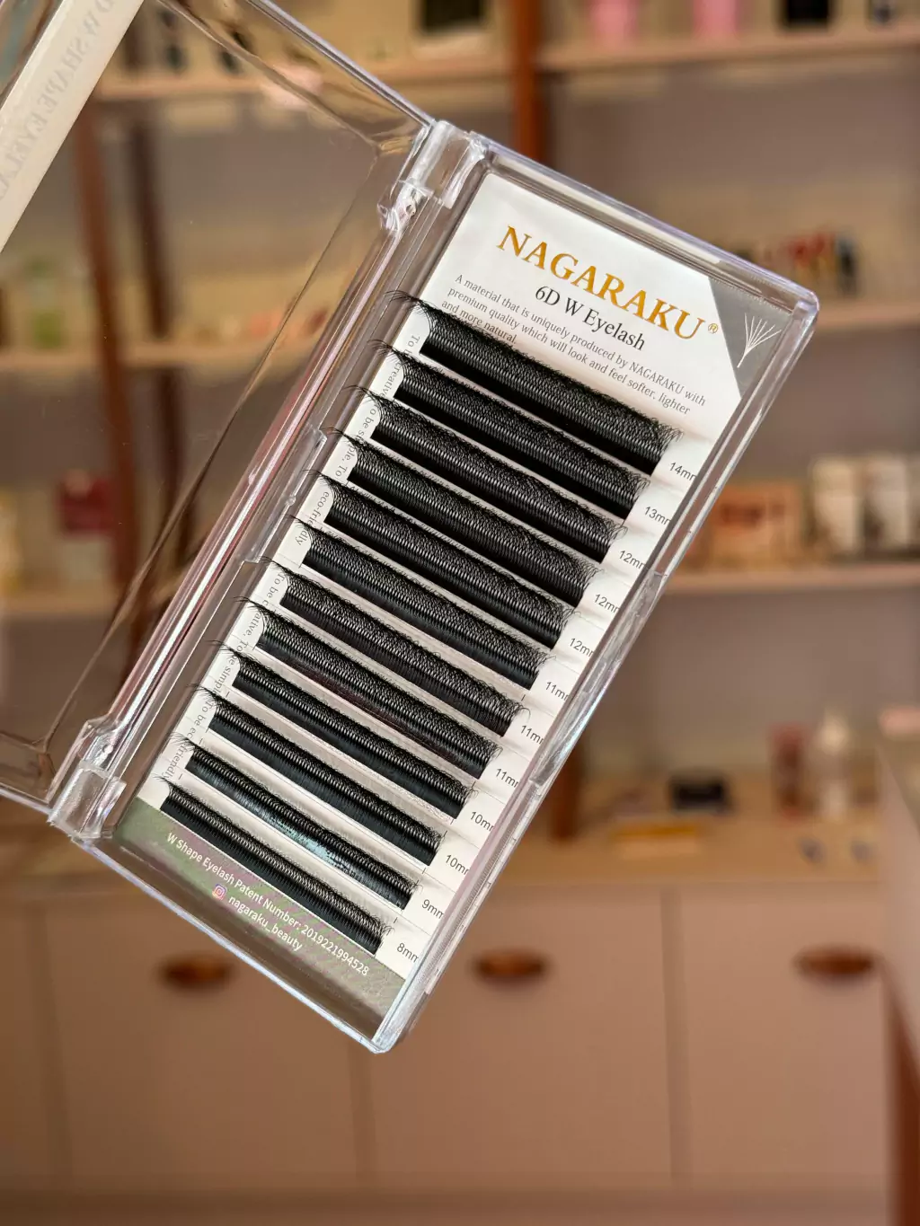 Os Cílios 6D W Lash é mais um novo lançamento da Nagaraku para o Mercado de Extensão de Cílios. Os Cílios possui 6 fios em um fio só, sendo os 6 fios mais abertos em formato de W 1 fio para cada lado. È o produto ideal para quem está iniciando e tem pouca prática na montagem de fans convencionais. O fio possui a base flat tendo maior absorção do adesivo aumentando sua durabilidade.