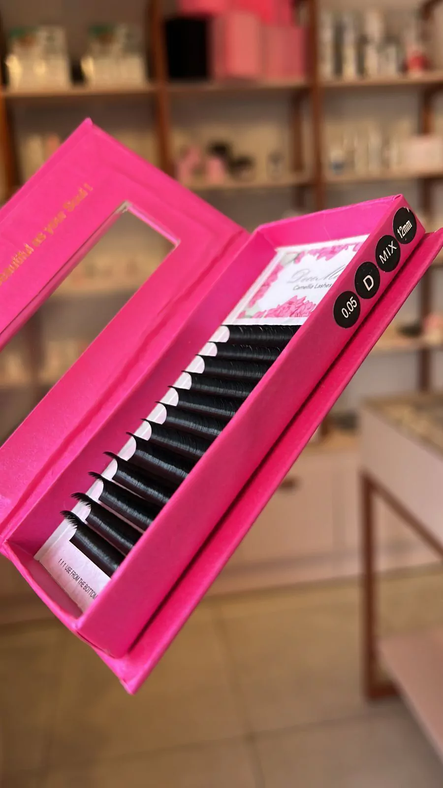Os cílios Auto Fan possuem uma pequena ligação na base do chicote que auxilia a montagem de seus Fans de forma muito mais fácil e prático, proporcionando agilidade na abertura do Fan e colocação. Não é considerado Tufo.