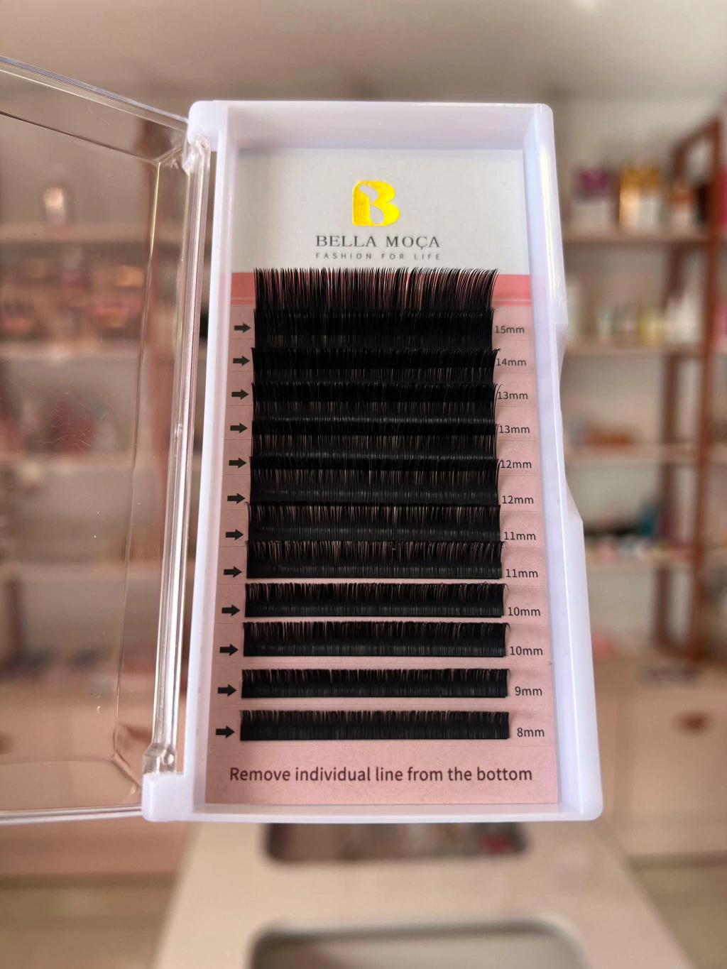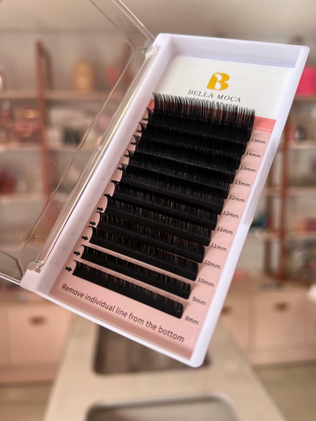 Cílios para a técnica fio a fio clássico (não é ellipse) fio mais firme, para um efeito mais natural. Não é adequado para montagem de fans, apenas para fio a fio.