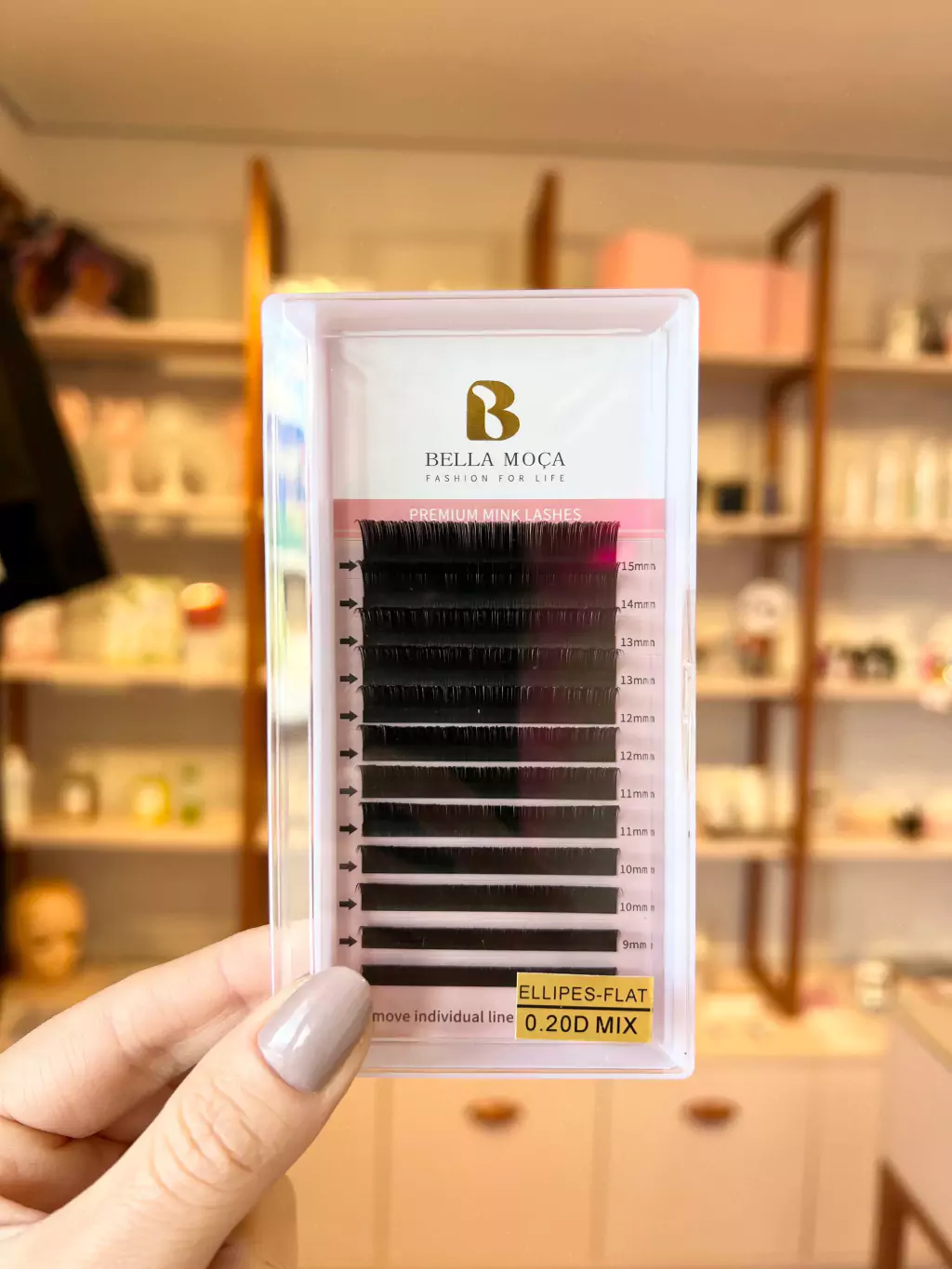 O famoso fio Ellipse tem a base flat (reta, achatada) e por isso facilita o encaixe, oferecendo uma maior base de contato e permitindo uma aderência melhor ao fio natural.