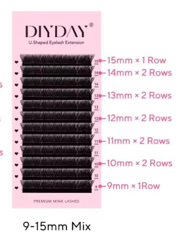 Cílios Fio U curvatura D Mix 9-15 cor preta