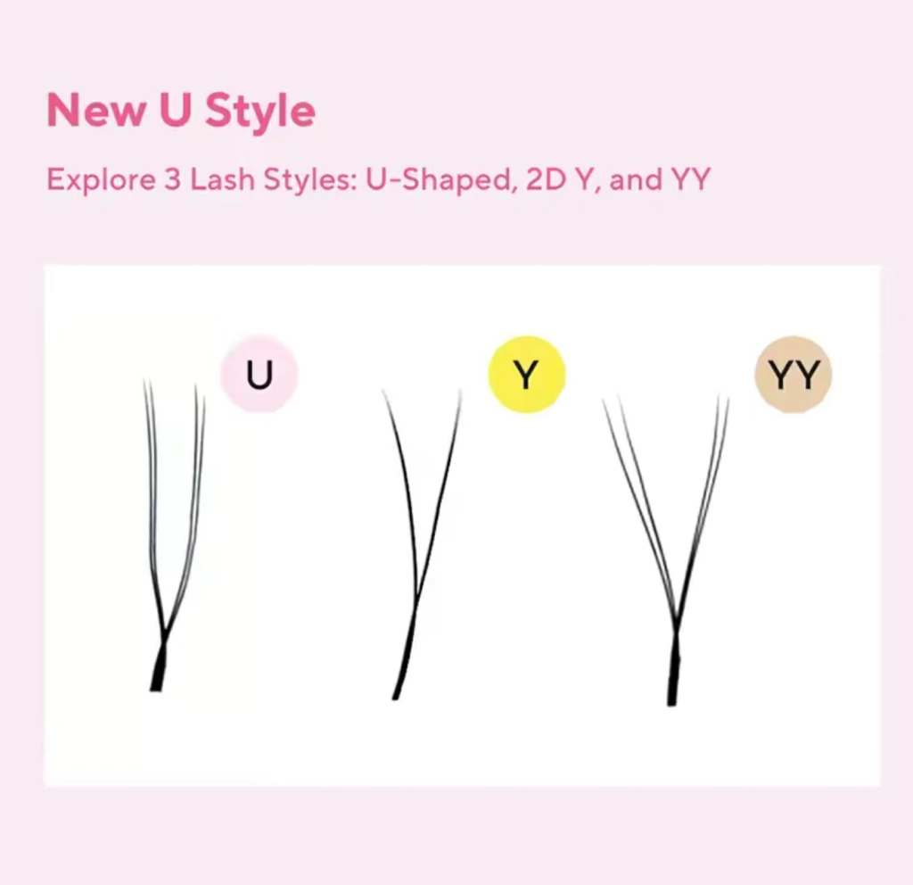 A curvatura U foi desenvolvida para profissionais que buscam uma estética refinada, com equilíbrio perfeito entre projeção e abertura. Seu design inovador apresenta ângulos variados, 180°, 120° e 60°, que permitem uma construção personalizada e estratégica dos fios, valorizando o formato dos olhos com leveza e naturalidade.