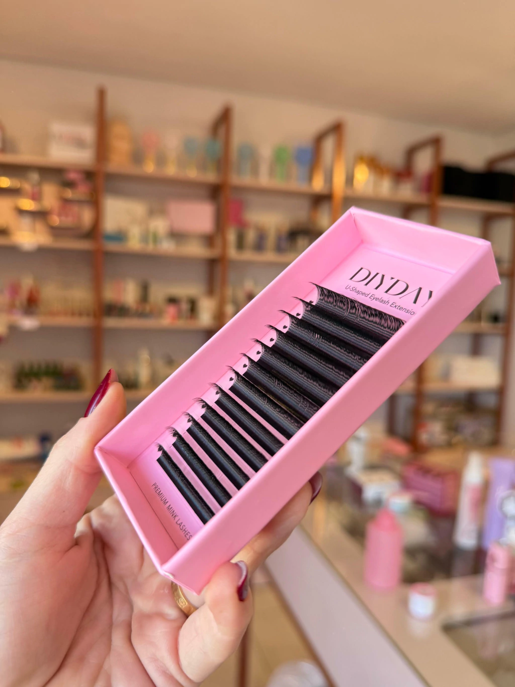 A curvatura U foi desenvolvida para profissionais que buscam uma estética refinada, com equilíbrio perfeito entre projeção e abertura. Seu design inovador apresenta ângulos variados, 180°, 120° e 60°, que permitem uma construção personalizada e estratégica dos fios, valorizando o formato dos olhos com leveza e naturalidade.