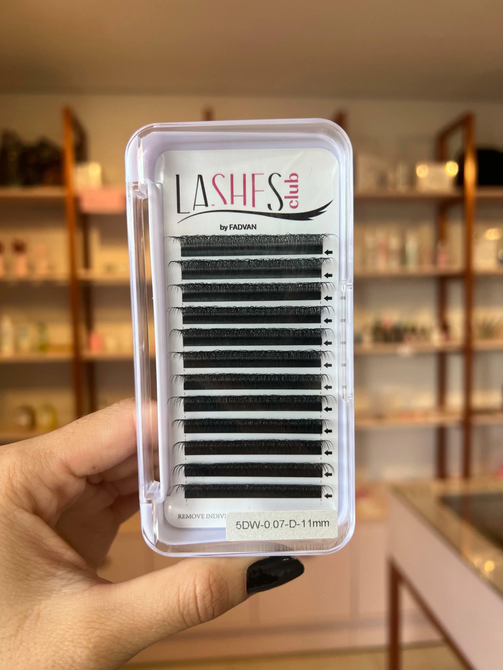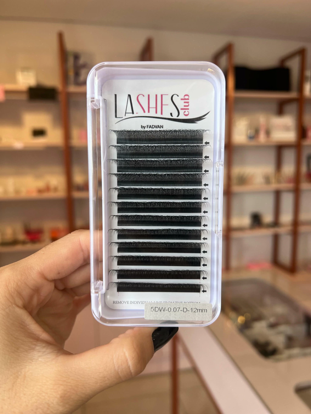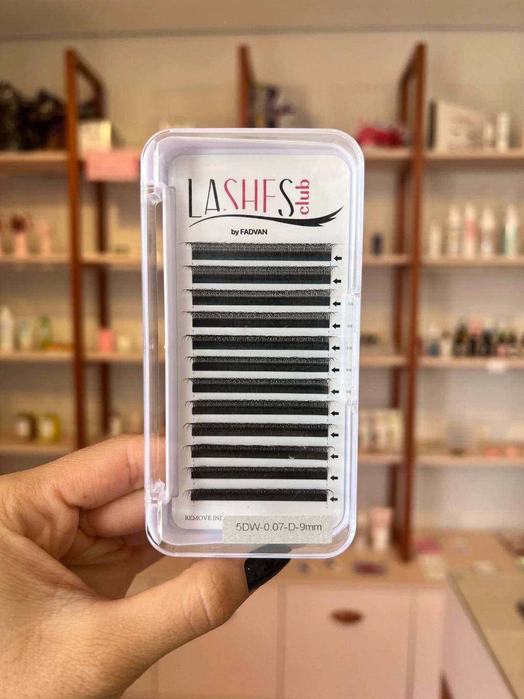 Este fio 5D W possui ainda mais volume que os fios Y (2D), W (3D) e 4D W, já que uniu-se a leveza do fio individual com 5x mais volume, desenvolvendo um produto novo e extremamente eficiente, principalmente para as Lashes que não tem facilidade para montar fans.