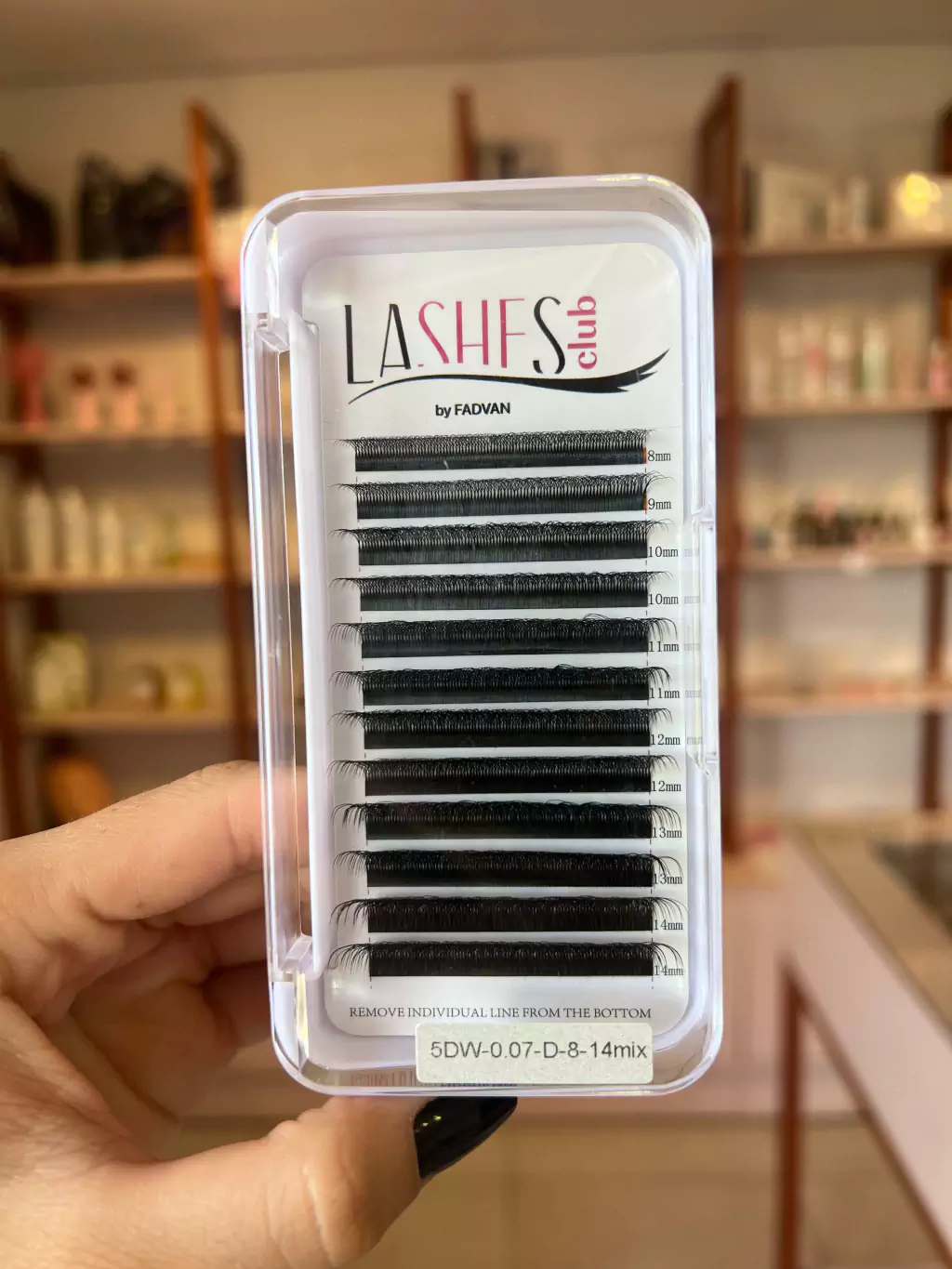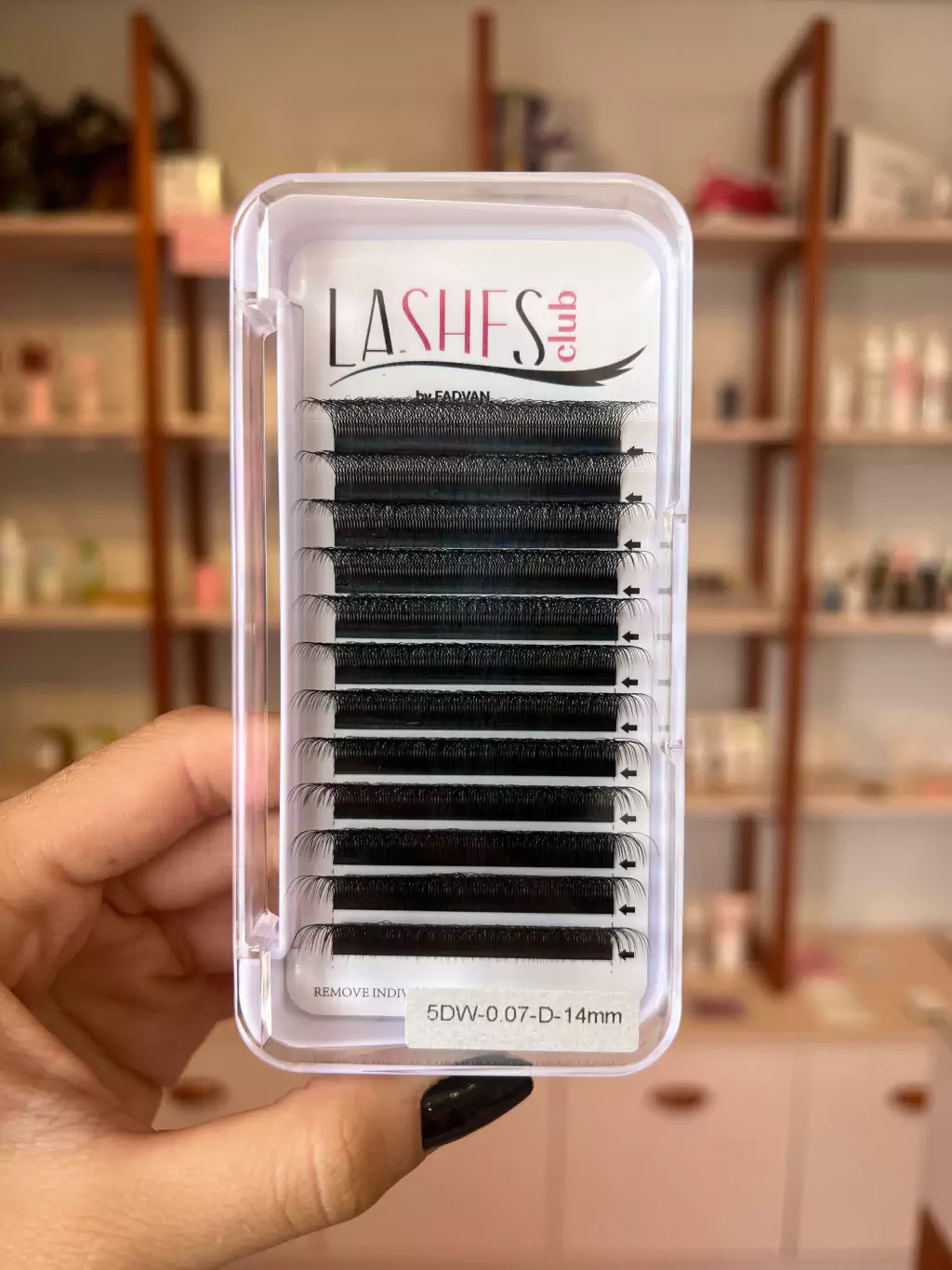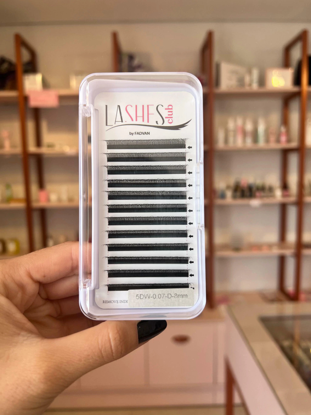 Este fio 5D W possui ainda mais volume que os fios Y (2D), W (3D) e 4D W, já que uniu-se a leveza do fio individual com 5x mais volume, desenvolvendo um produto novo e extremamente eficiente, principalmente para as Lashes que não tem facilidade para montar fans.