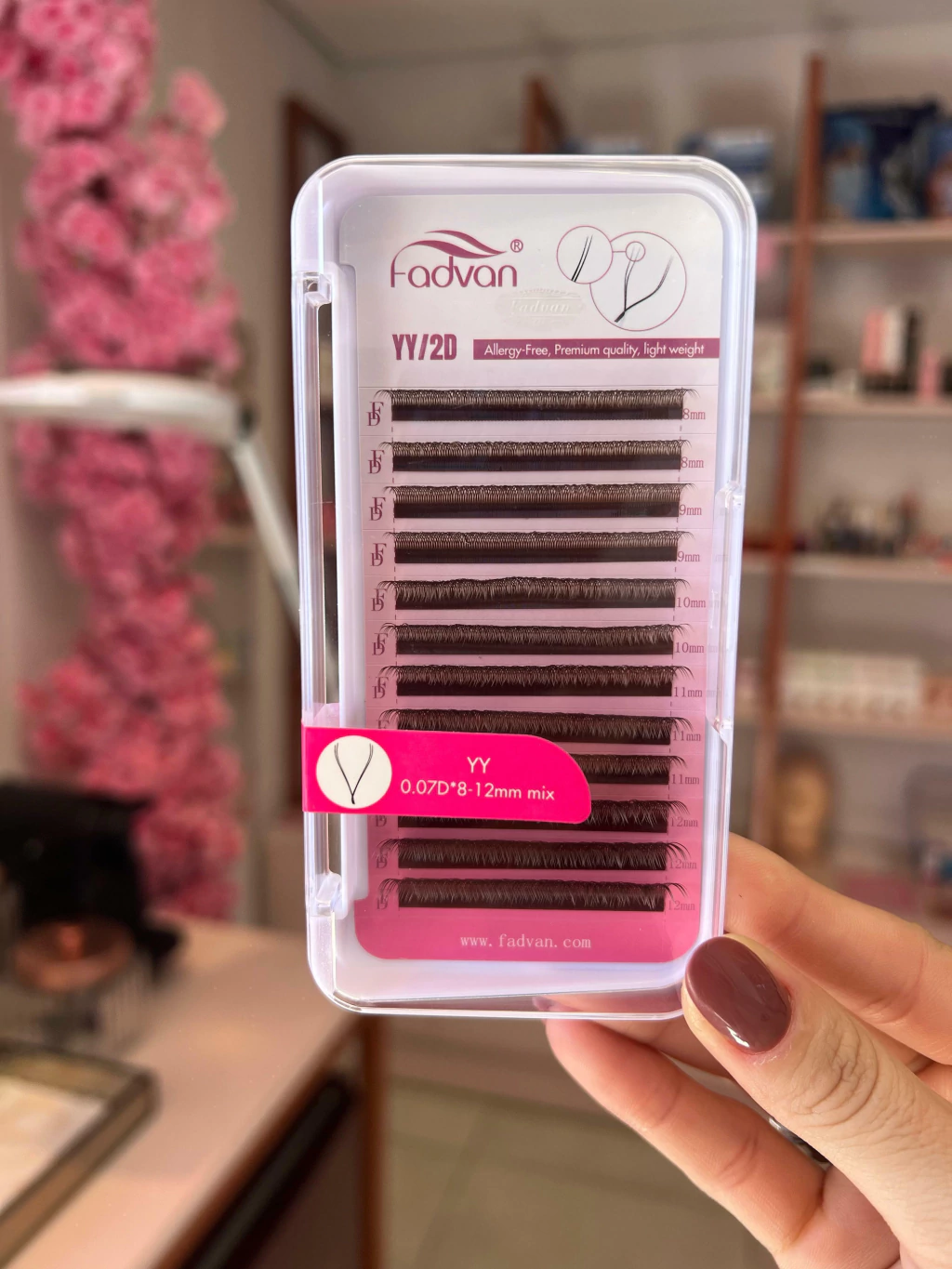 Possuem a facilidade da técnica do alongamendo clássico (fio a fio) e o resultado das técnicas de volume. O fio Y possui 4 fios unidos em 1 só, sendo 2 fios para cada lado criando um efeito volumoso de maneira leve e incrivelmente marcante sem sobrecarregar o fio natural da cliente.
