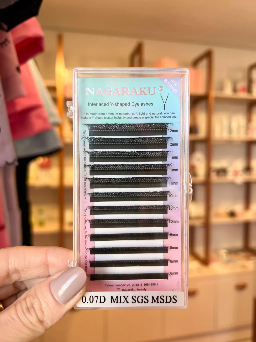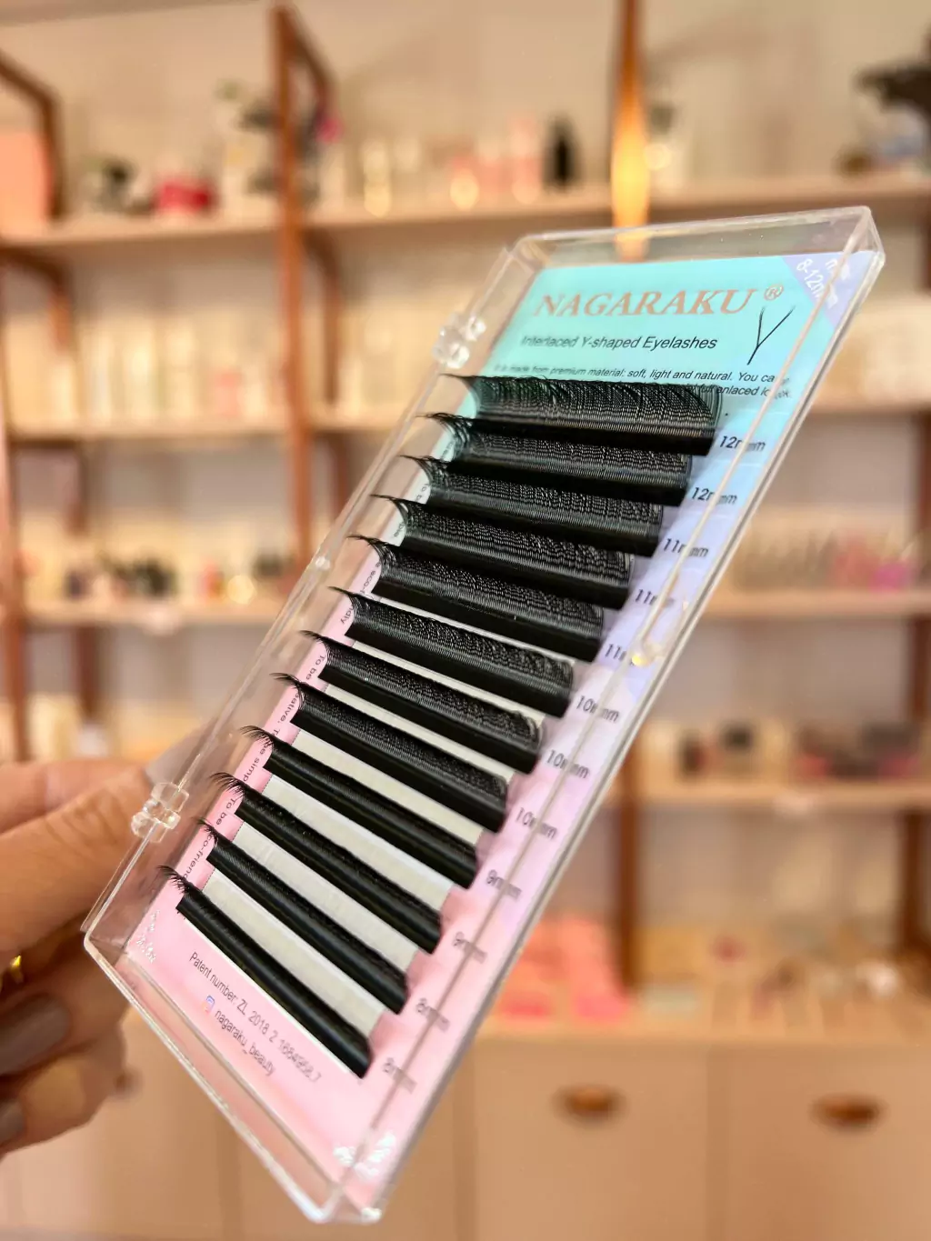 Os Cílios em Y da Nagaraku, são fabricados com um material de altíssima qualidade chamado fibra nobre de PBT e produzidos com alta tecnologia.