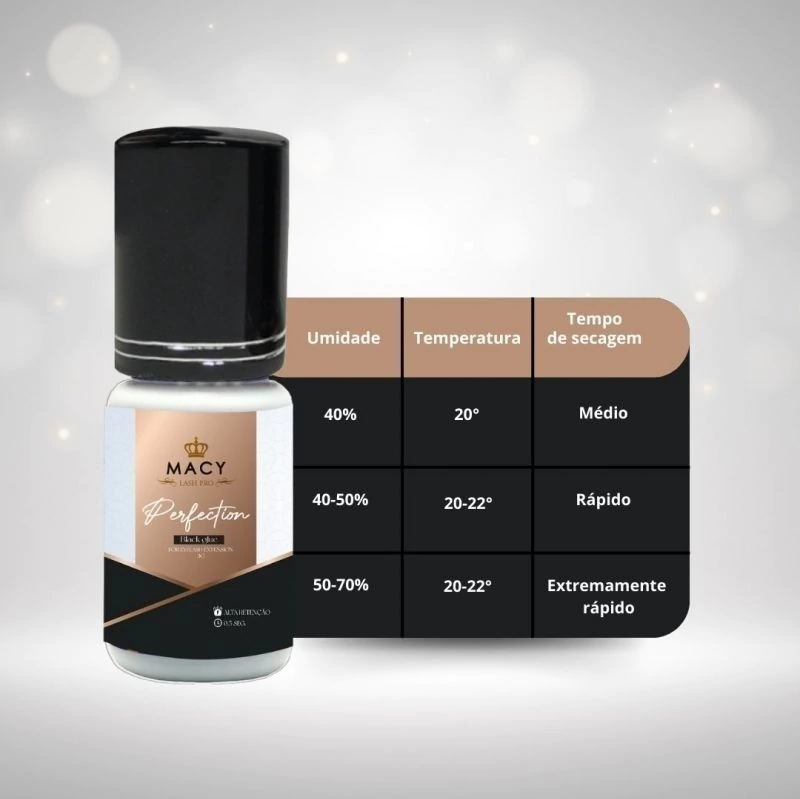 A Cola Macy Perfection foi desenvolvida para atender às exigências mais elevadas dos profissionais de beleza e se caracteriza pela excelência quando o assunto é alta retenção. Devido a sua consistência mais fina, a secagem é ultrarrápida – ou seja, perfeita para profissionais experientes que não querem esperar o adesivo secar. Além disso, a Macy Perfection funciona rapidamente em qualquer umidade – baixa ou alta. Perfection, como o próprio nome já diz, é perfeita para uma aplicação intacta e duradoura, com experiência superior e qualidade excepcional, produzida especialmente para profissionais que priorizam seus resultados.