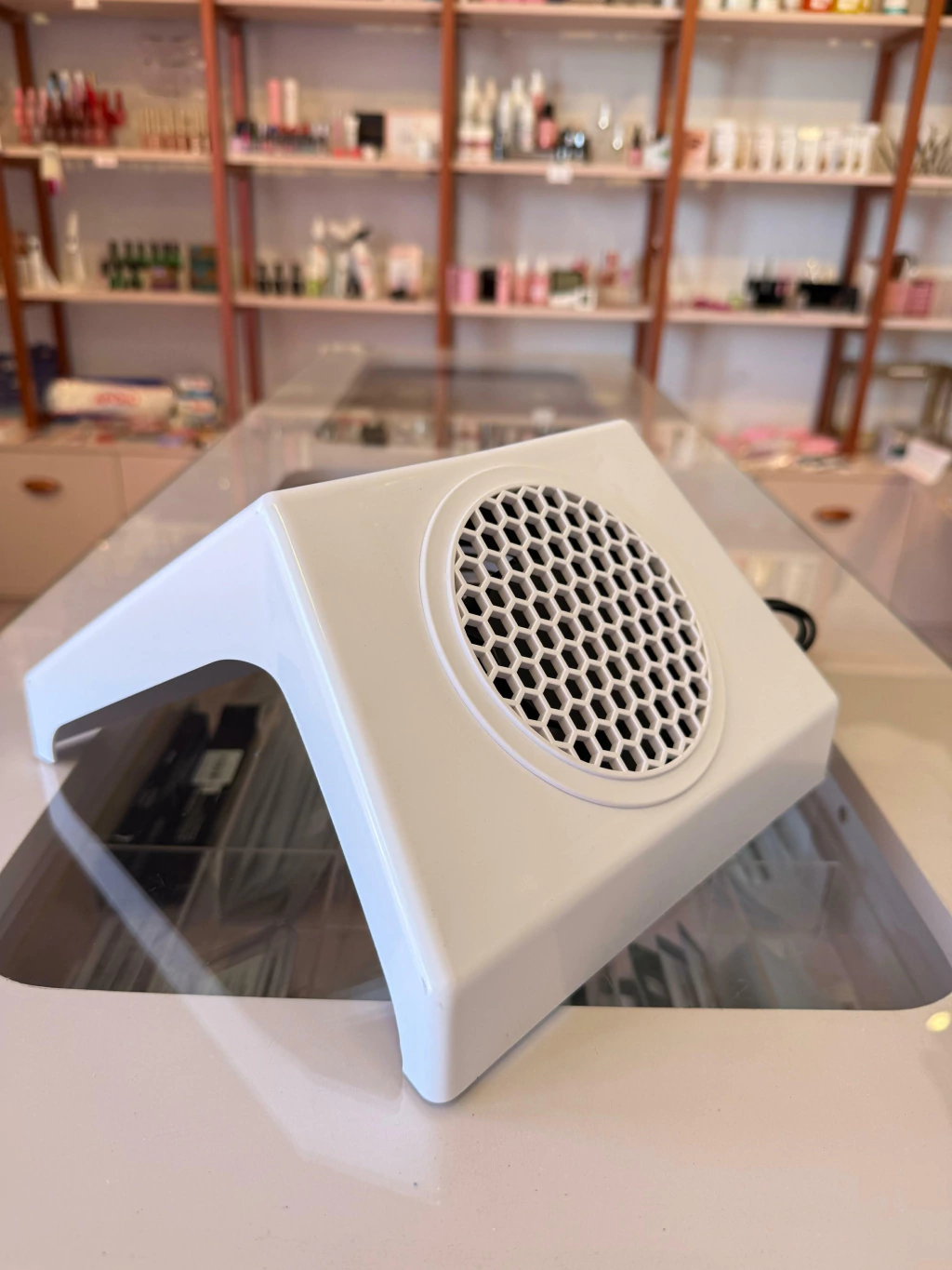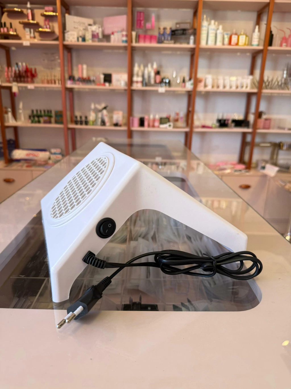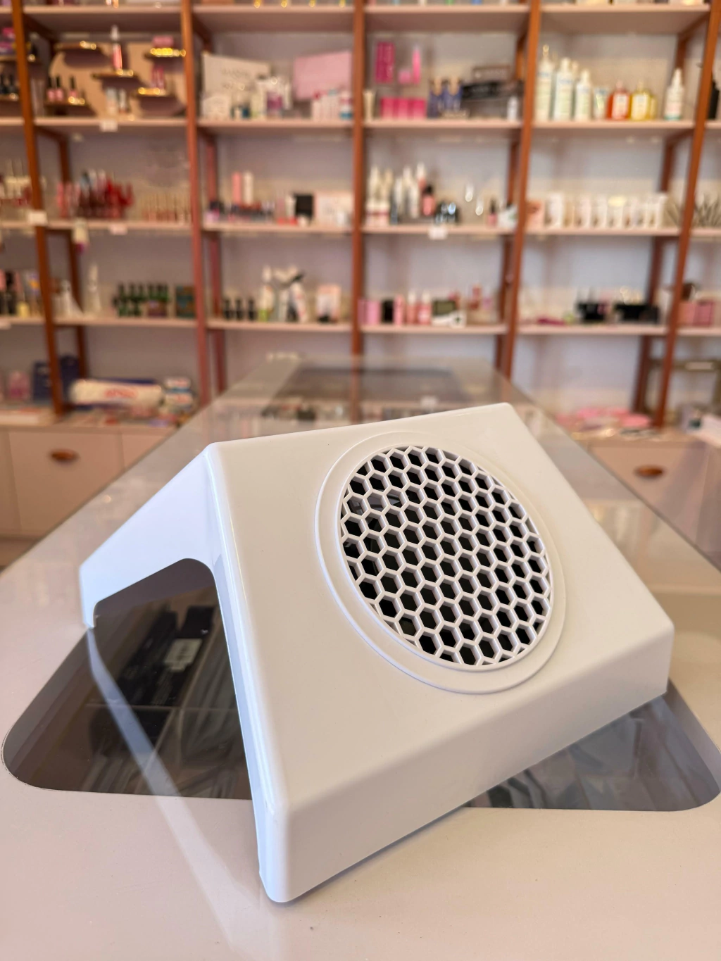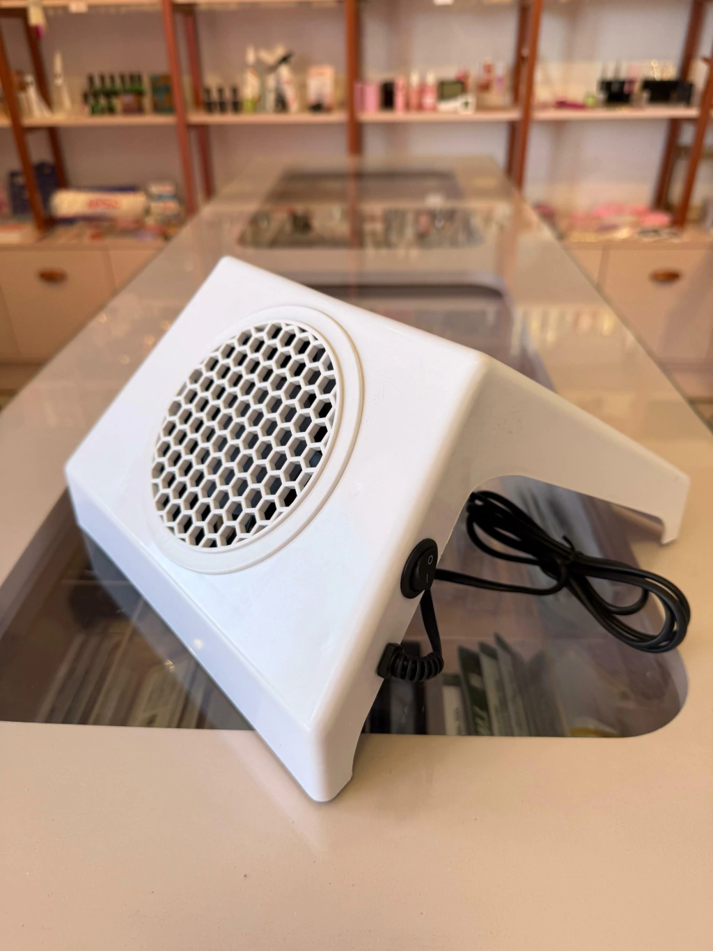 Um coletor de pó para unhas, também conhecido como "nail dust collector", é um equipamento utilizado por manicures para aspirar e remover o pó gerado durante o lixamento e a manutenção de unhas artificiais e naturais. Ele ajuda a manter o ambiente de trabalho limpo e livre de partículas que podem ser prejudiciais à saúde.