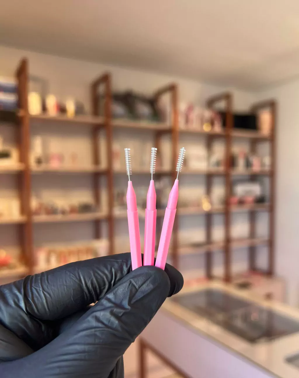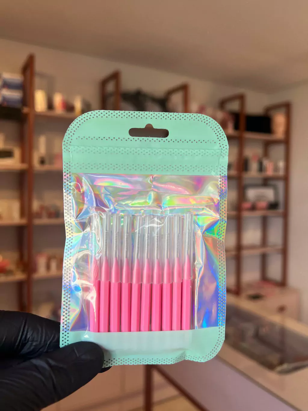 Essas escovinhas são pequenas e finas, com cerdas macias e delicadas. Elas são usadas para brow lifh, pentear e separar os cílios naturais, removendo qualquer resíduo de maquiagem, óleo ou sujeira.