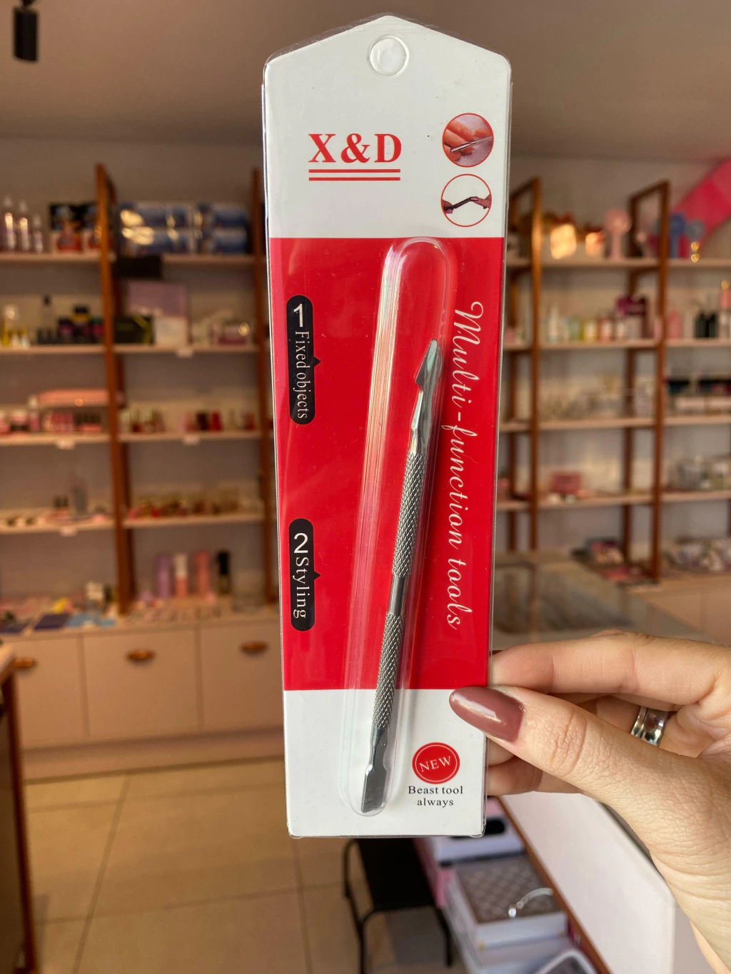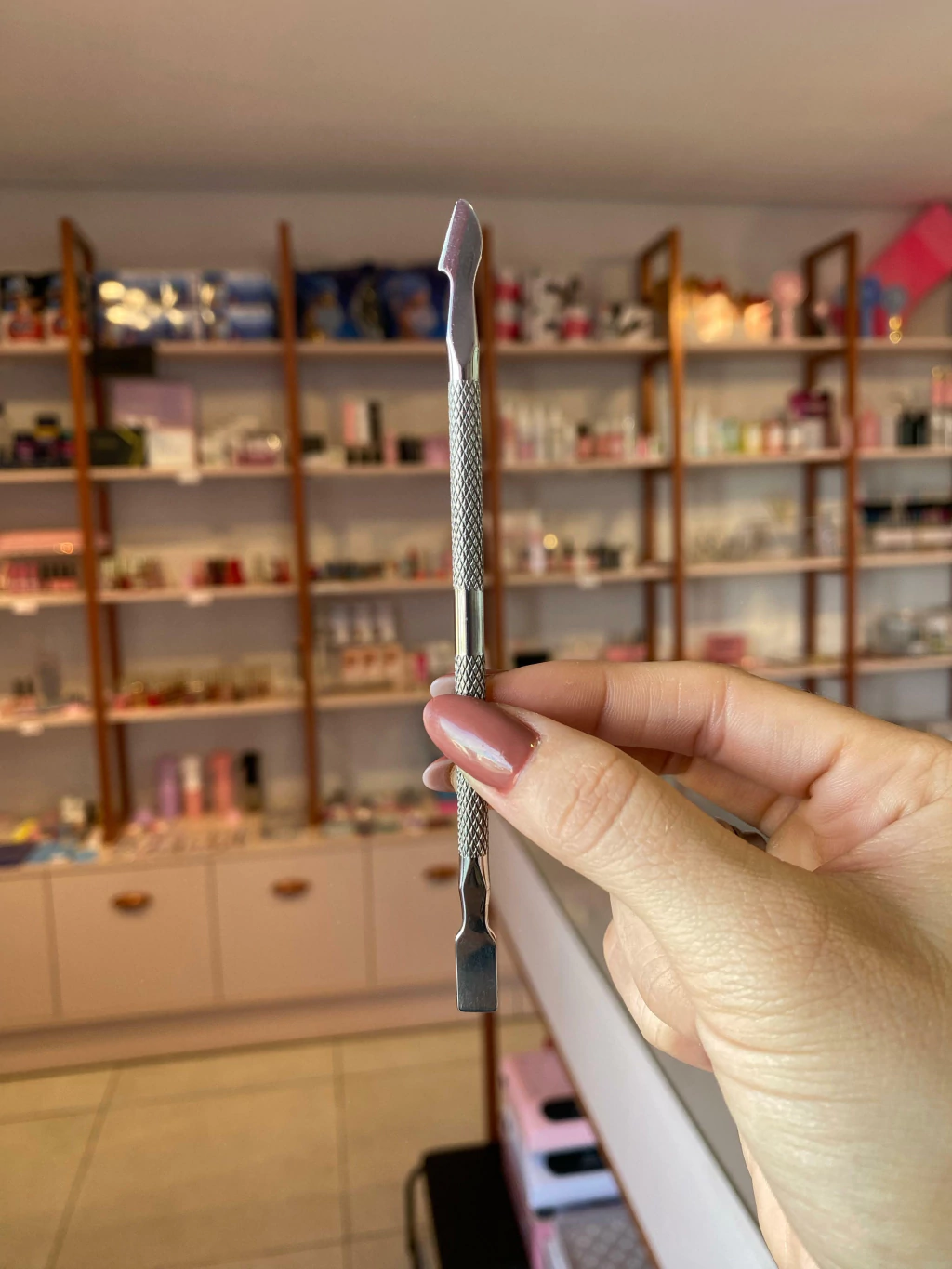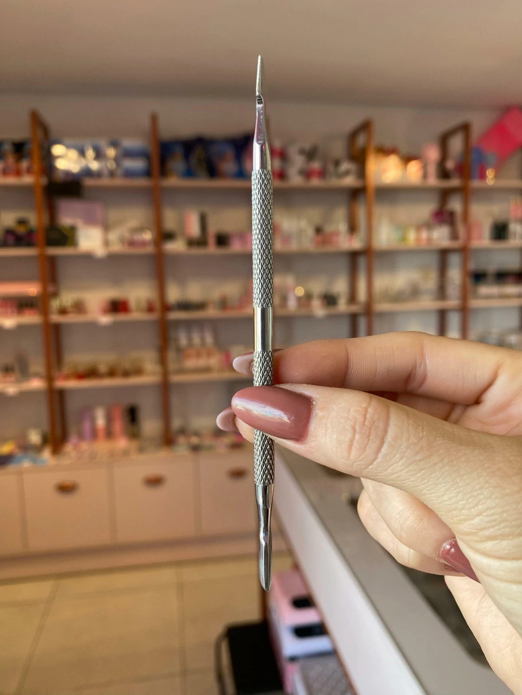 A espátula para unhas serve para empurrar e raspar as cutículas, além de limpar as unhas.
