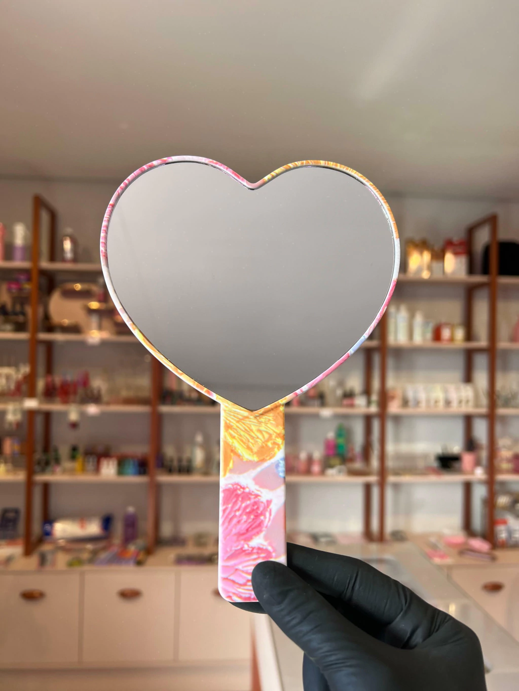 Espelho de mão princesa/vintage ideal para mostrar o resultado final das extensões para as clientes.Ele tem 25cm de altura e 12cm de larguraMaterial: Vidro e plástico