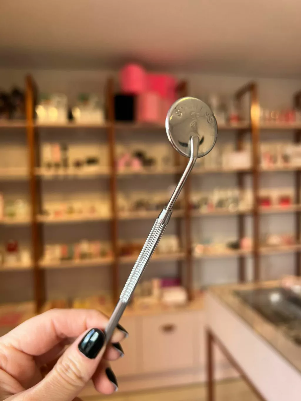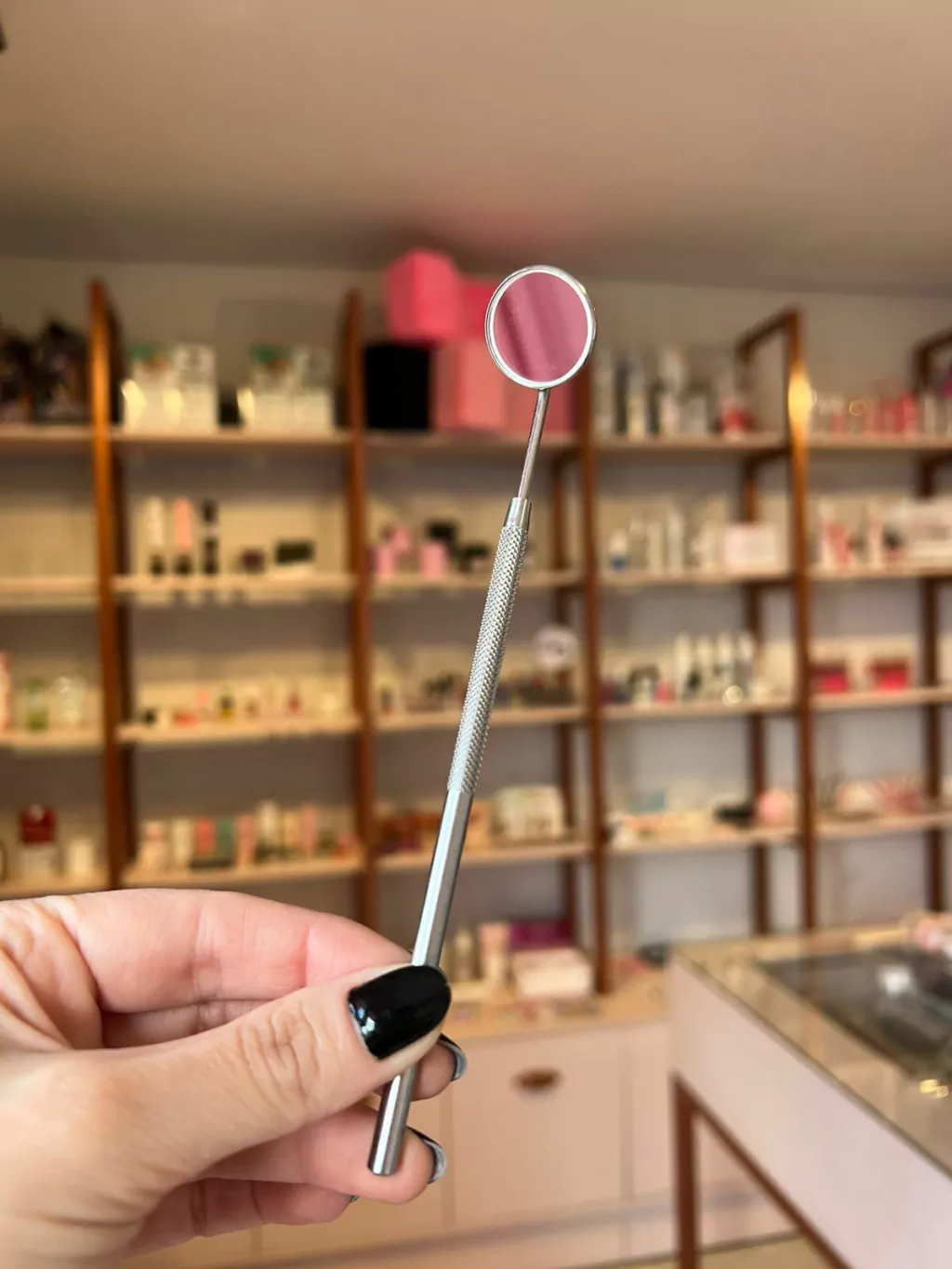 Esse espelho proporciona uma melhor visão para o procedimento de alongamento de cílios, já que utilizando esse utensílios você consegue ter noção de diversos ângulos, assim facilitando muito a aplicação dos fios