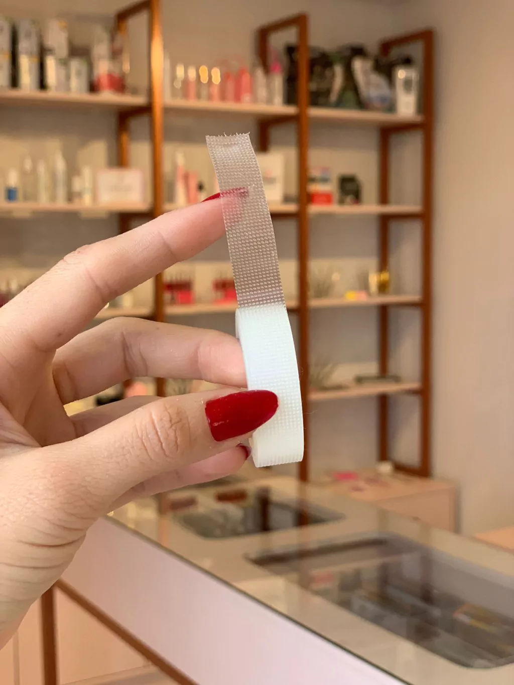 - A fita é usada para prender os fios que o patch não alcança. - A fita auxilia no levantamento das pálpebras, otimizando o tempo de aplicação dos Cílios. - A extensão da fita transpore é de 9mt e largura 1,3 - Fácil de cortar.