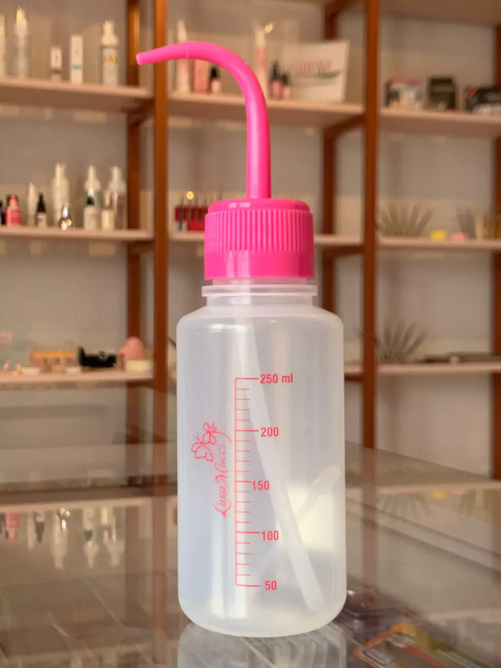 A Pisseta, um frasco prático, utilizado pelas profissionais para uma higienização precisa dos cílios. O frasco é utilizado para a lavagem dos fios, com o seu bico dosador o jato água auxilia na limpeza antes e/ou após a remoção.