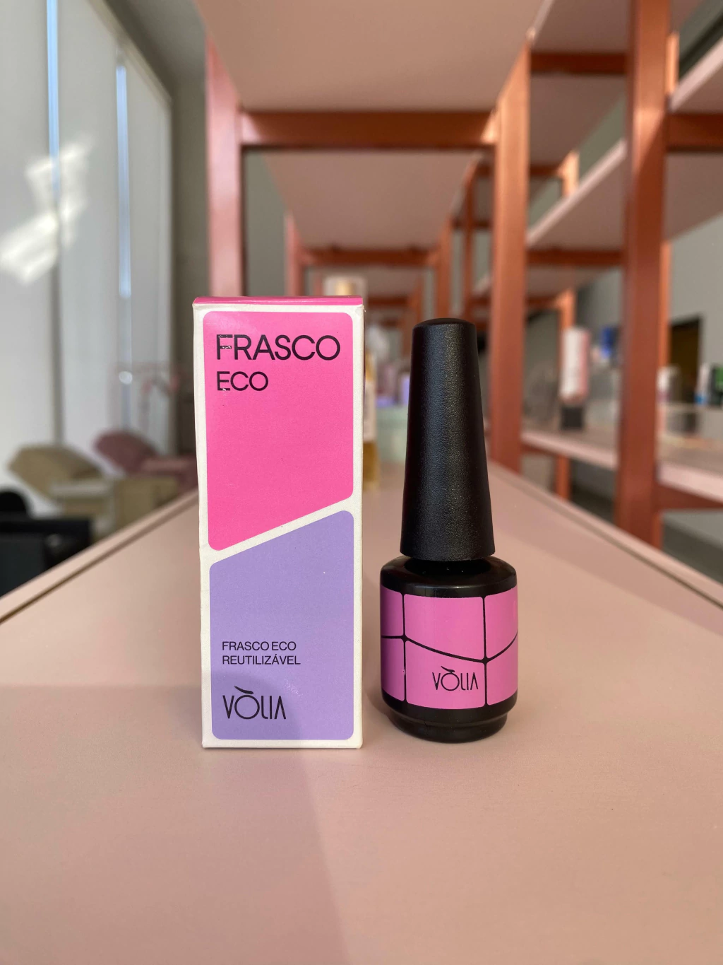 Frasco Eco Vedado – VòliaFrasco eco vedado da marca Vòlia, para refil de top coat, esmalte ou gel.Embalagem vazia.