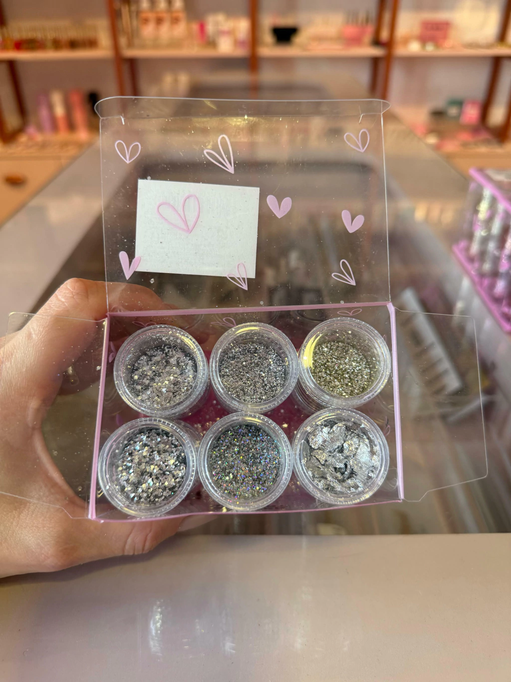 Kit de Glitter Nail Art com 12 potes sortidos PRATA
