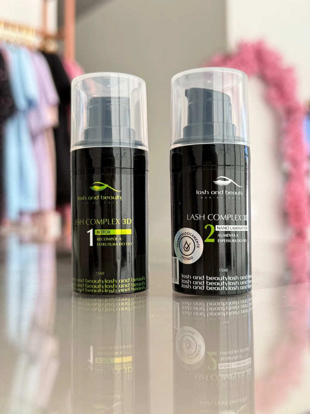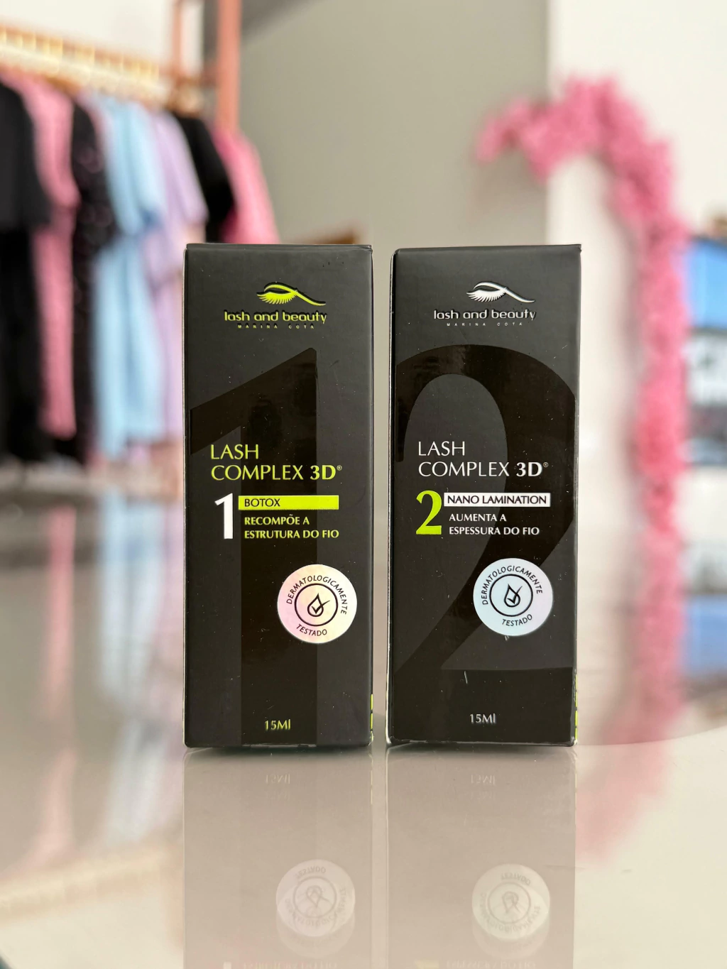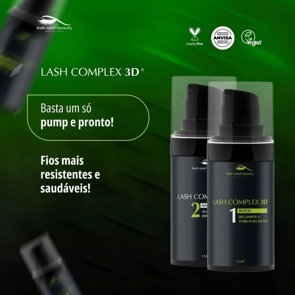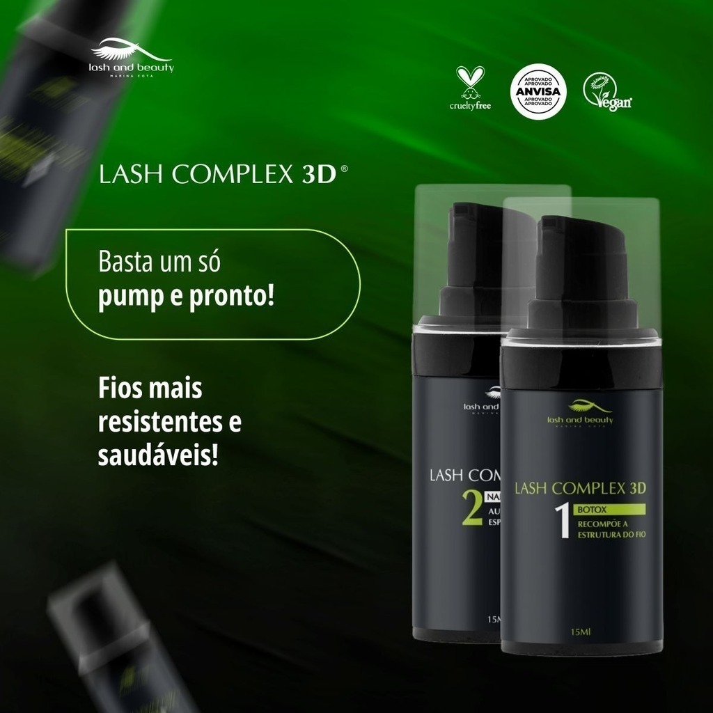 O Lash Complex 3D Lash and Beauty é dividido em 2 passos: Btx, que reconstrói a estrutura do fio natural e o Nano Lamination, que é um poderoso que sela e encorpa os fios aumentando sua estrutura em até 40%.