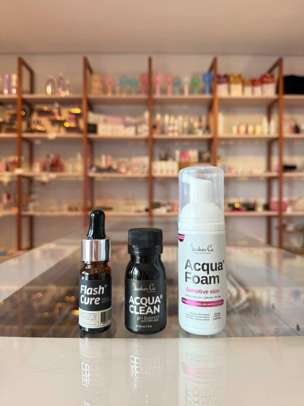 A água funcional da Lashes Co. é um produto exclusivo, desenvolvido para limpeza dos fios no pré e pós procedimento; e preparação dos fios buscando aumento da retenção e da durabilidade das extensões de cílios.