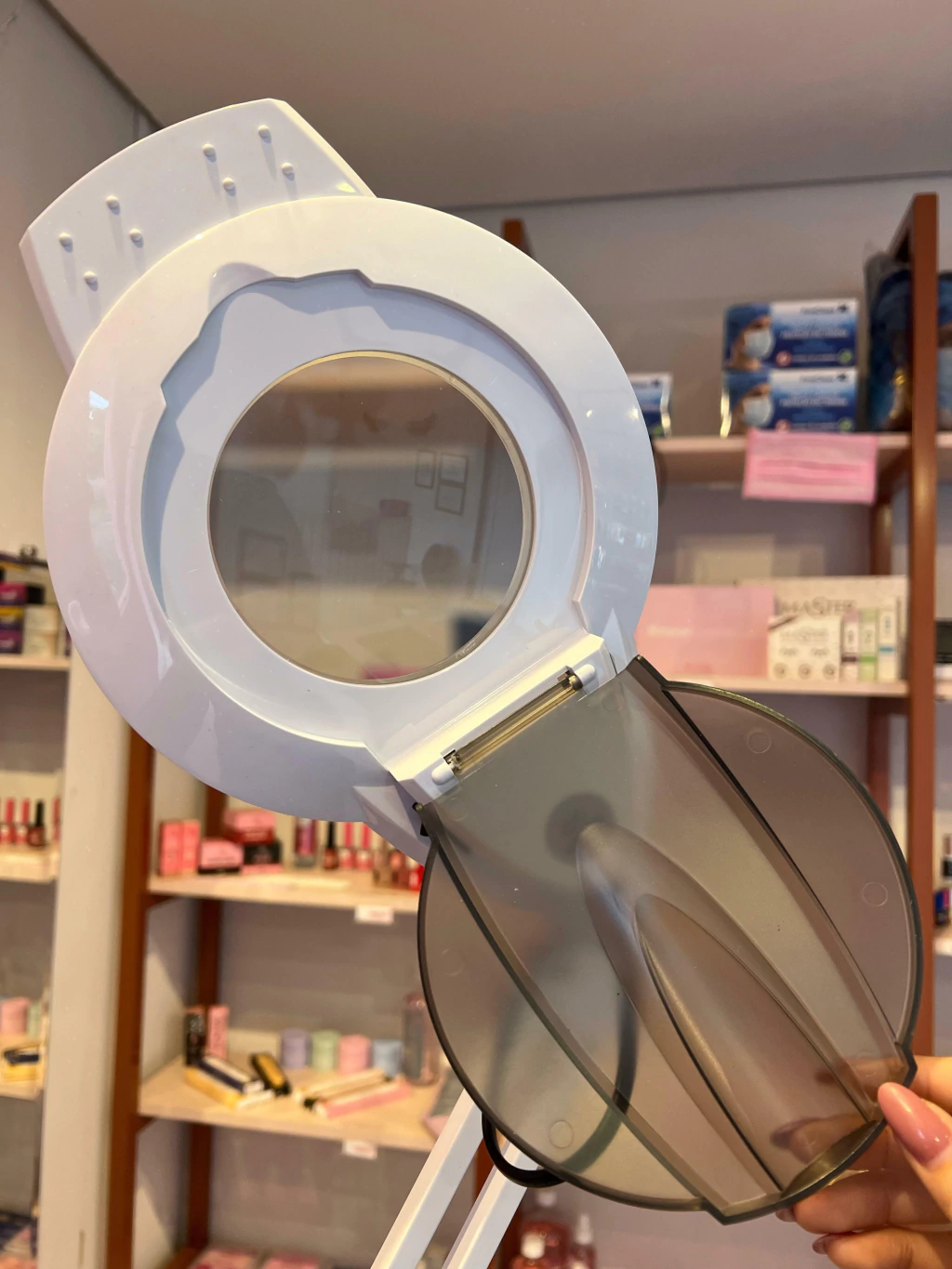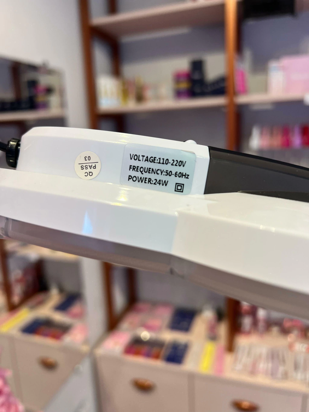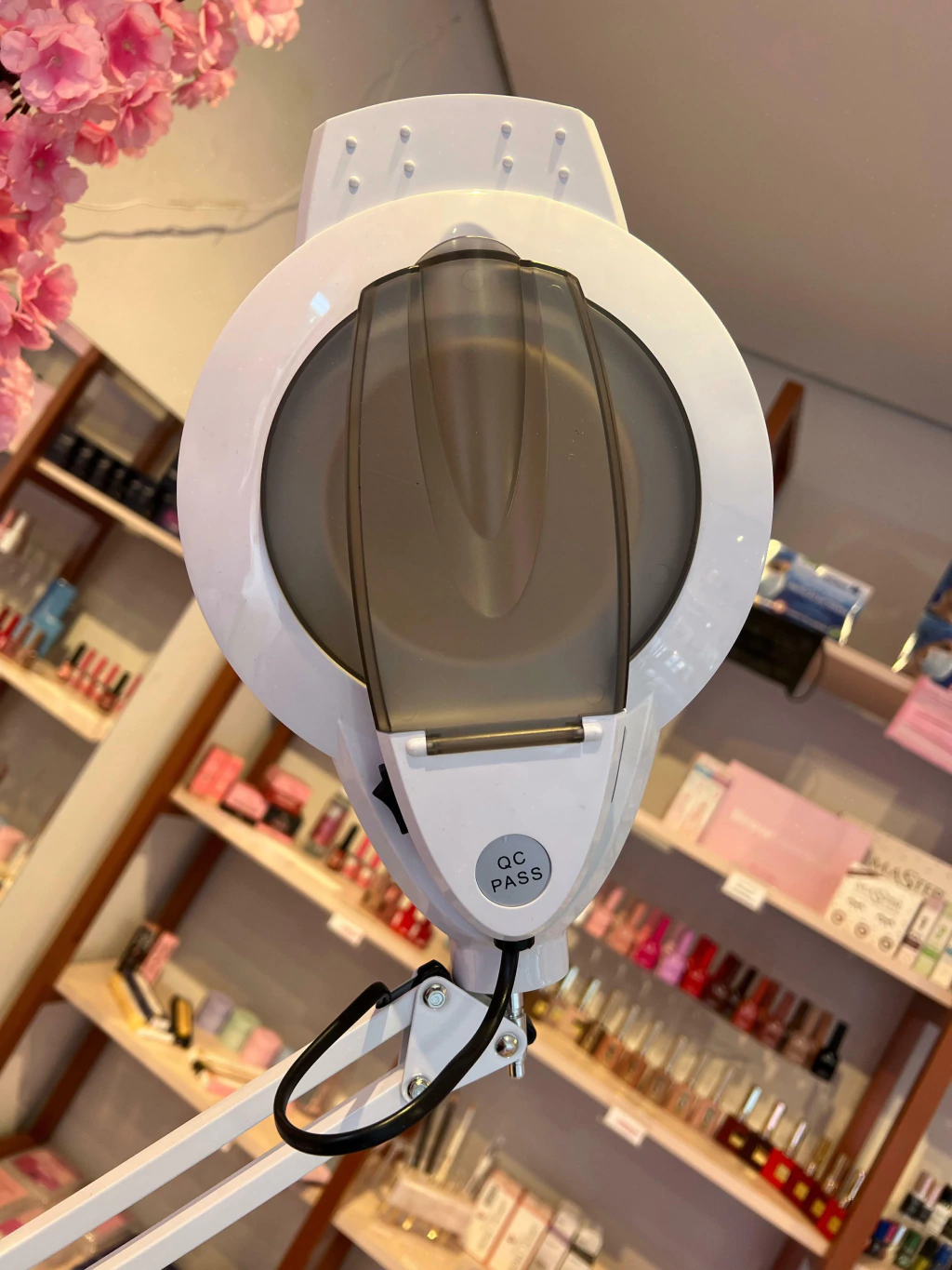 Luminária de mesa articulada na cor branca, voltagem 110-220V 24WBase de encaixe 5cmLupa 18x28cmBivolt