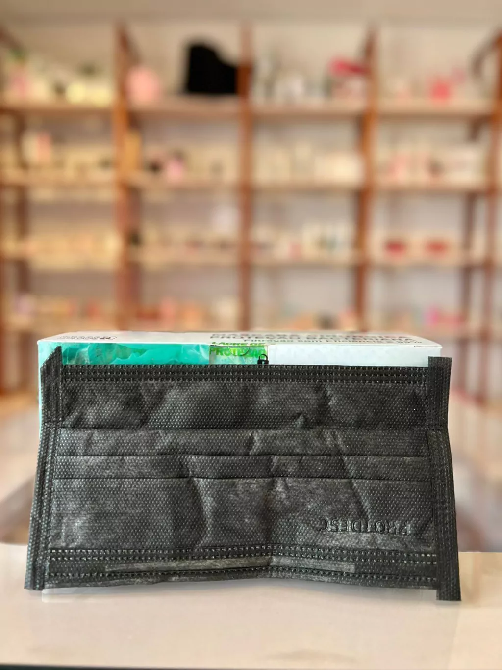 Três camadas externas de não tecido 100% polipropileno. Uma camada de filtro de retenção bacteriana Meltblow;