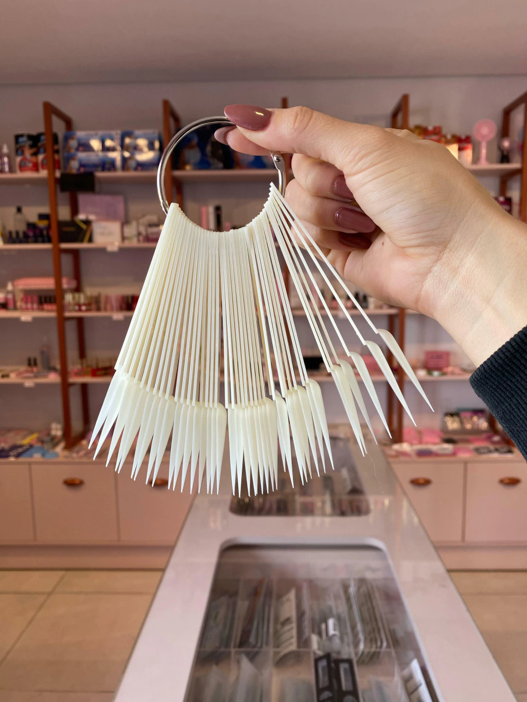 A amostra de unhas ideal para manicures e para mulheres que gostam de personalizar suas unhas em casa. Permite testar cores de esmaltes e criar diferentes estilos de Nail Art para demonstração. As unhas são semelhantes às postiças e são práticas para criar, treinar e realizar demonstrações para clientes, ajudando as manicures a montarem um portfólio.