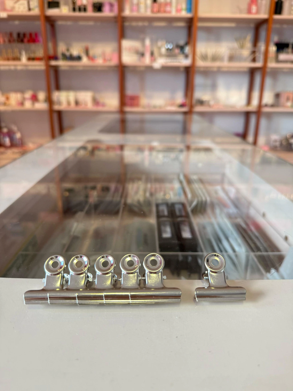 A presilha para nails, ou presilha para unhas, serve para dar formato às unhas durante o processo de alongamento. É um item indispensável para uma boa aderencia do alongamento.
