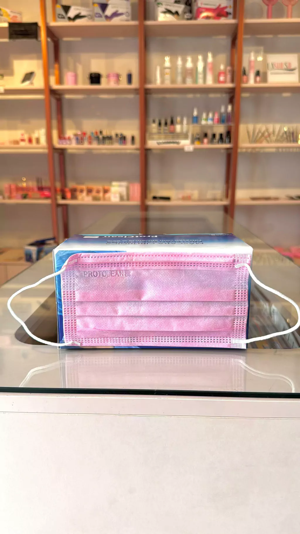 Máscaras Descartáveis fabricadas em não-tecido de estrutura plana, flexível e porosa, composto por grânulos de resina de polipropileno, unidos por processo térmico. Clipe para ajuste nasal em metal galvanizado e revestido com plástico.