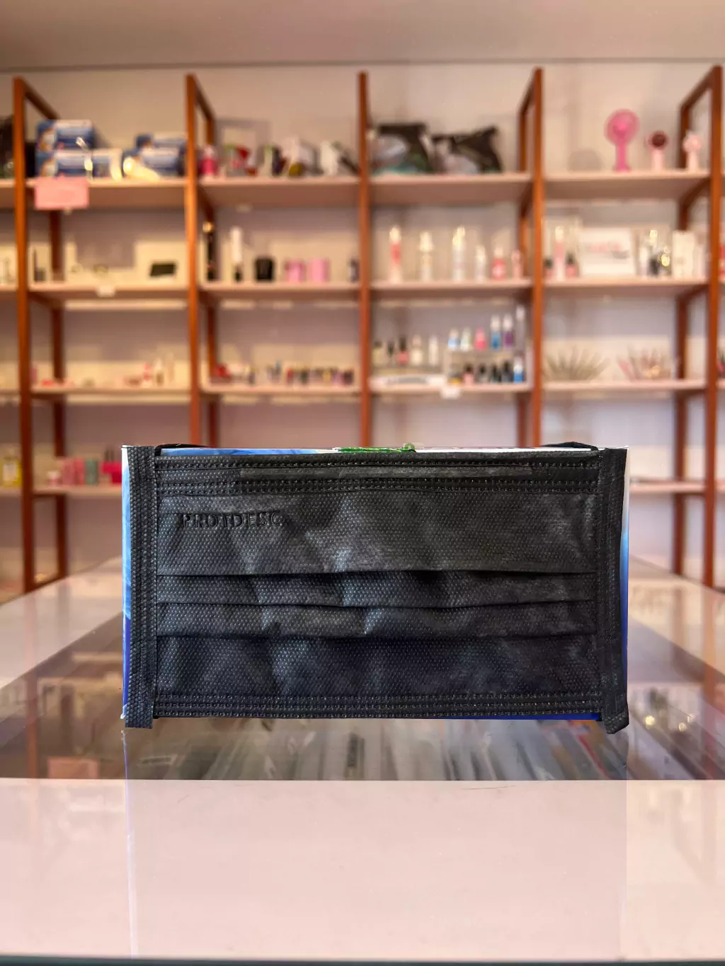 Máscaras Descartáveis fabricadas em não-tecido de estrutura plana, flexível e porosa, composto por grânulos de resina de polipropileno, unidos por processo térmico. Clipe para ajuste nasal em metal galvanizado e revestido com plástico.