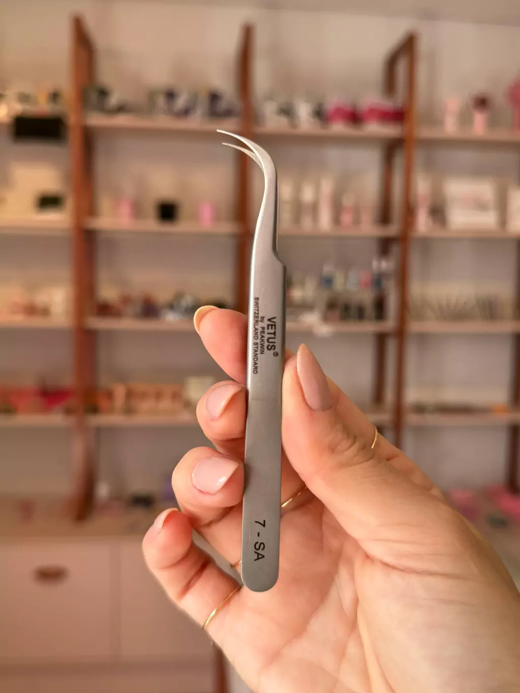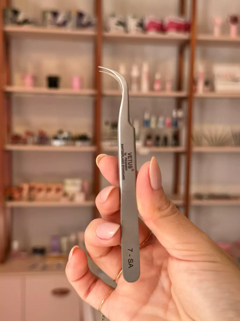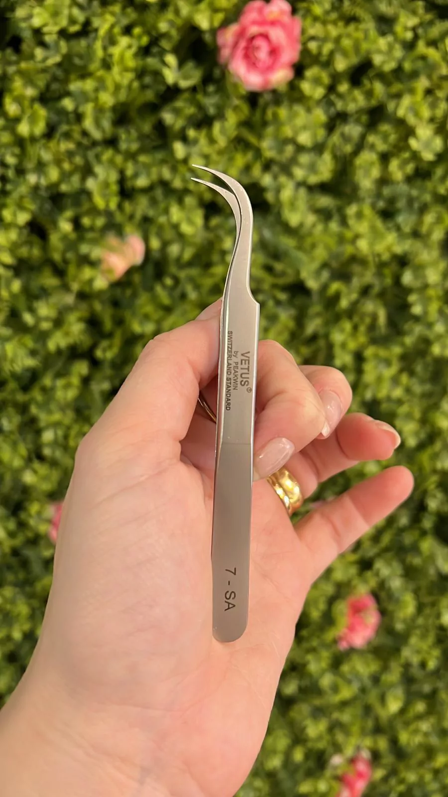 A Pinça da Vetus 7SA possui a ponta curvada e pode ser usada para aplicação, isolamento ou remoção mecânica (adaptação da profissional).