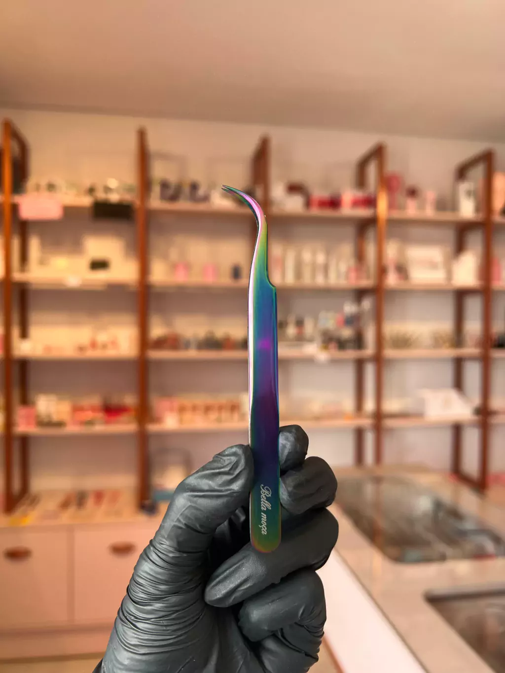 Pinça curvada bella moça (indicada para fio a fio, brasileiro , volume e isolamento / depende da adaptação de cada profissional)