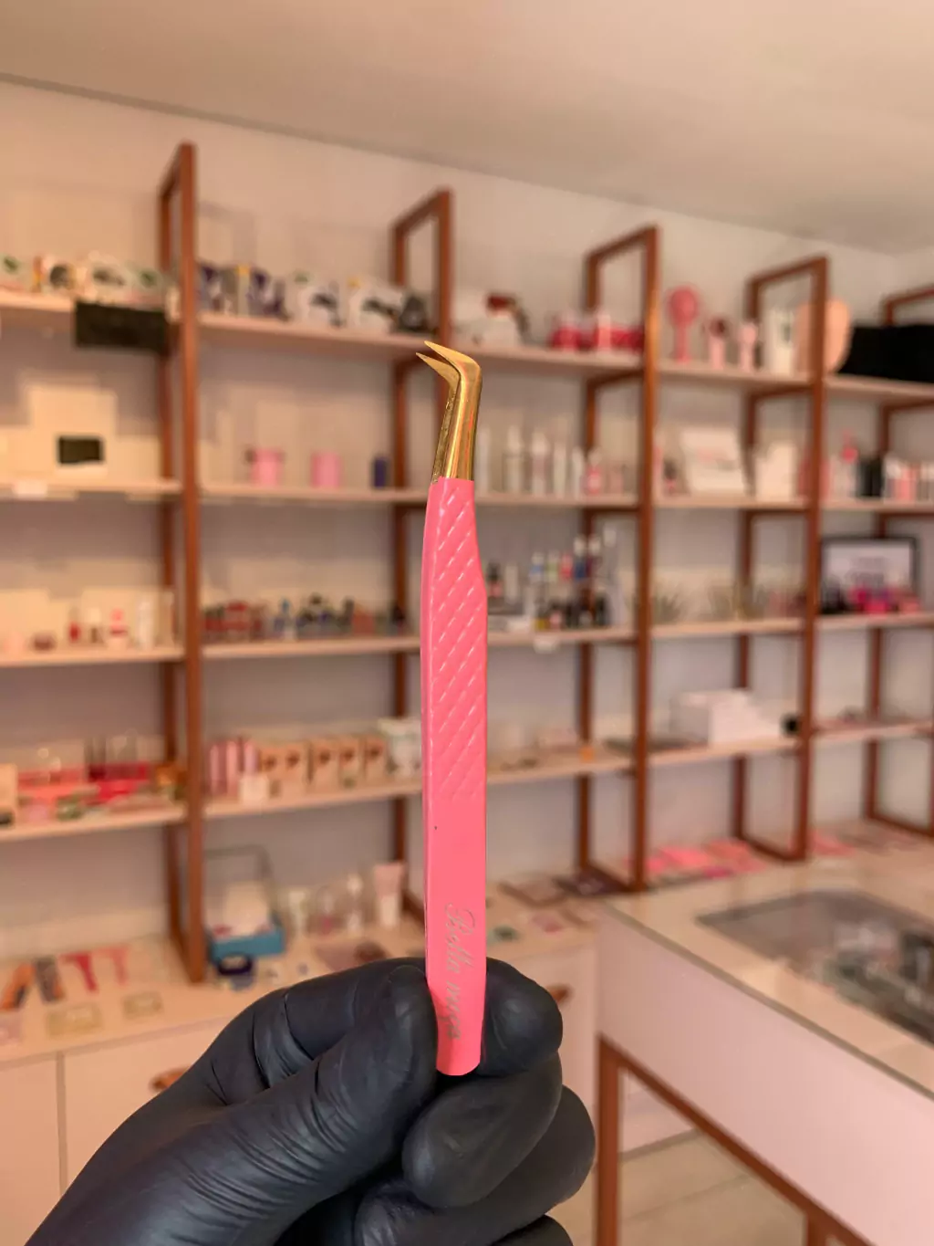 Pinça R4 da Bella Moça tem a pronta menor, ajuda na montagem de fans e pode ser usada para aplicação (adaptação da profissional).