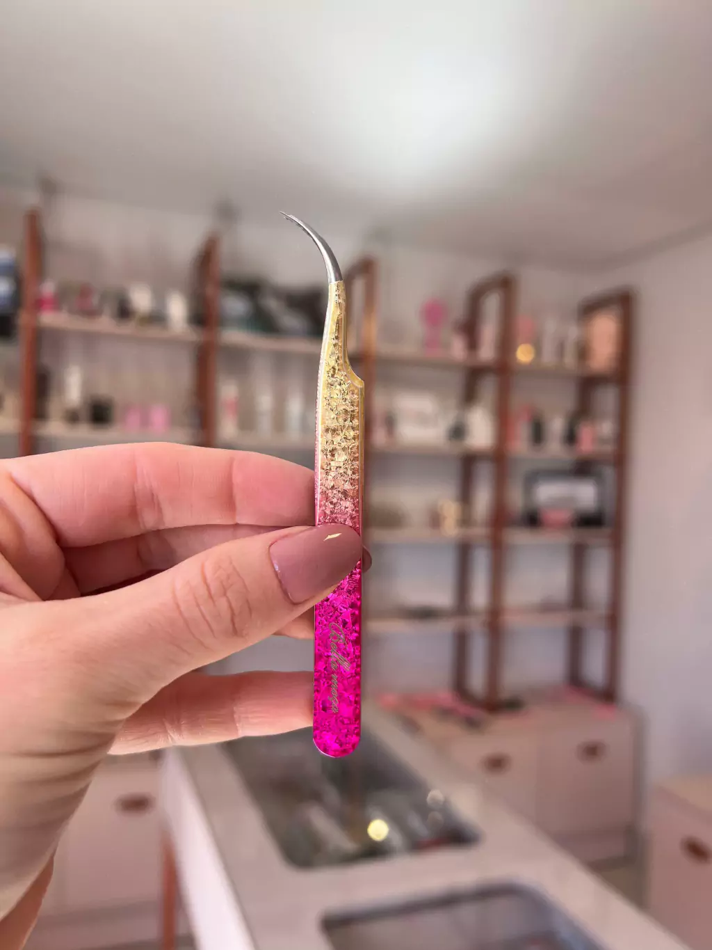 Pinça Curvada nova BELLA MOÇA Brilhosa amarela com rosa
