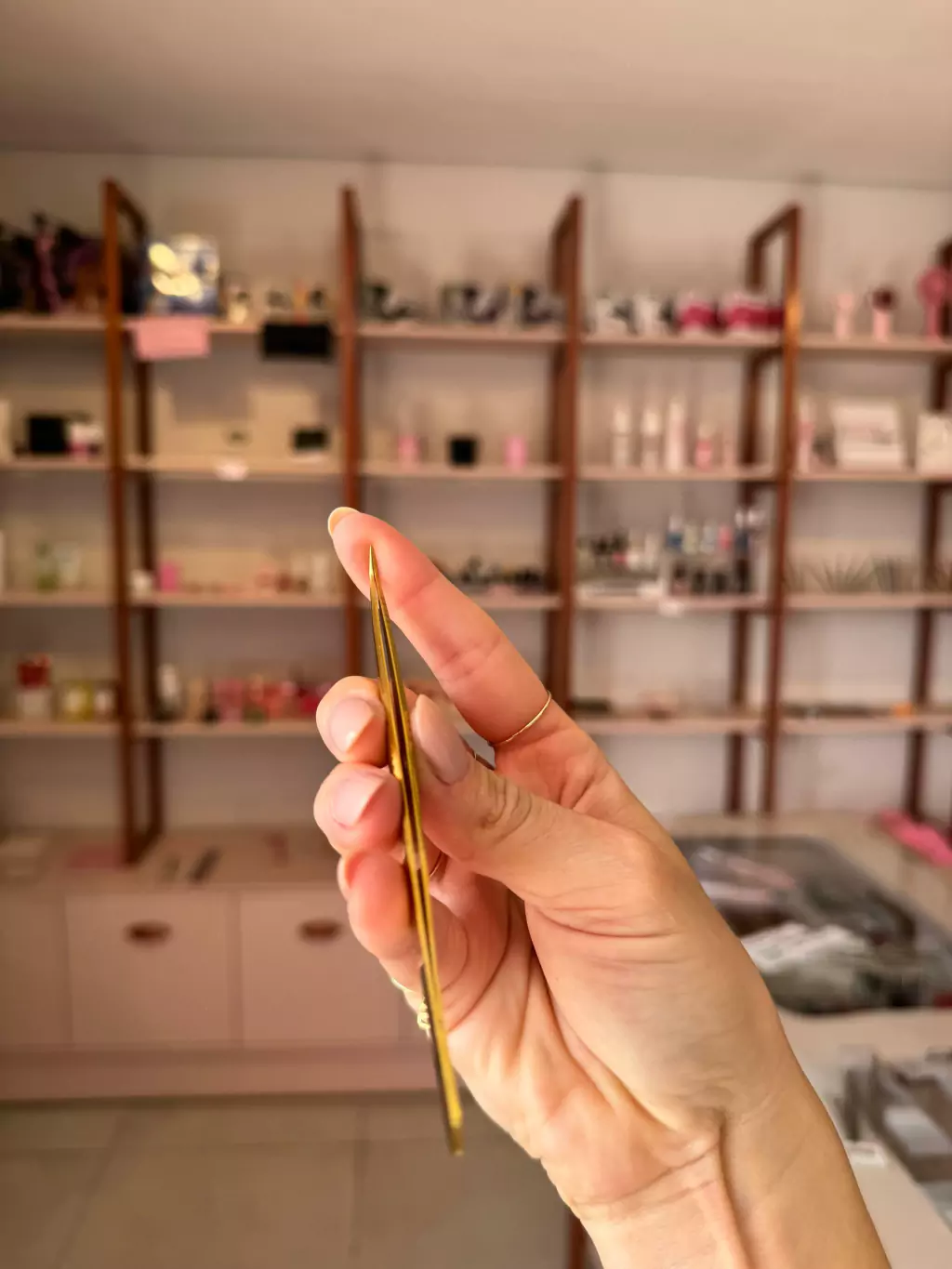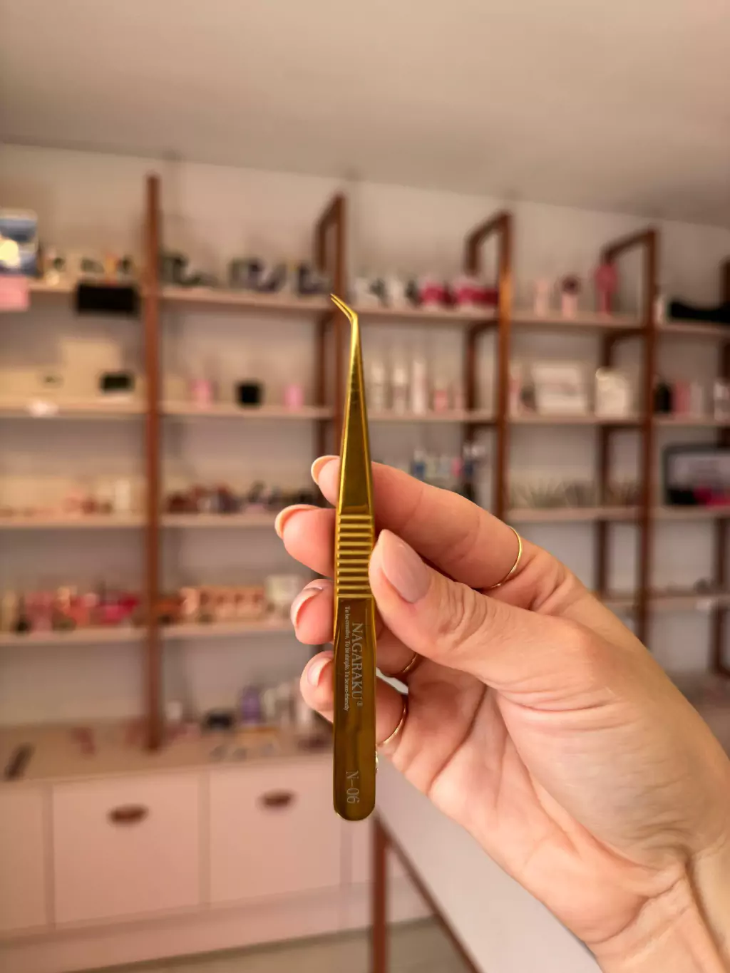Pinça Nagaraku N-06 Dourado possui um acabamento surpreendente e totalmente único, foi projetada pensando em quem necessita de agilidade na montagem de fans, mas que também pode ser utilizada na técnica de fio a fio por possuir uma ponta fina e de alta precisão. Seu material foi desenvolvido pensando em seu bem estar, por ter acabamento matte, o qual inibe