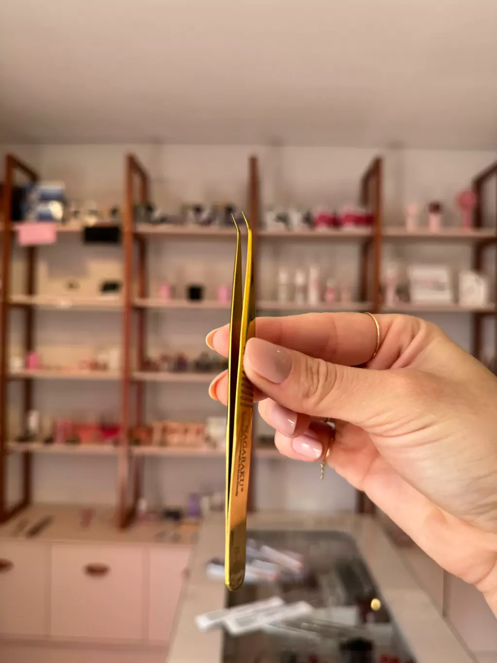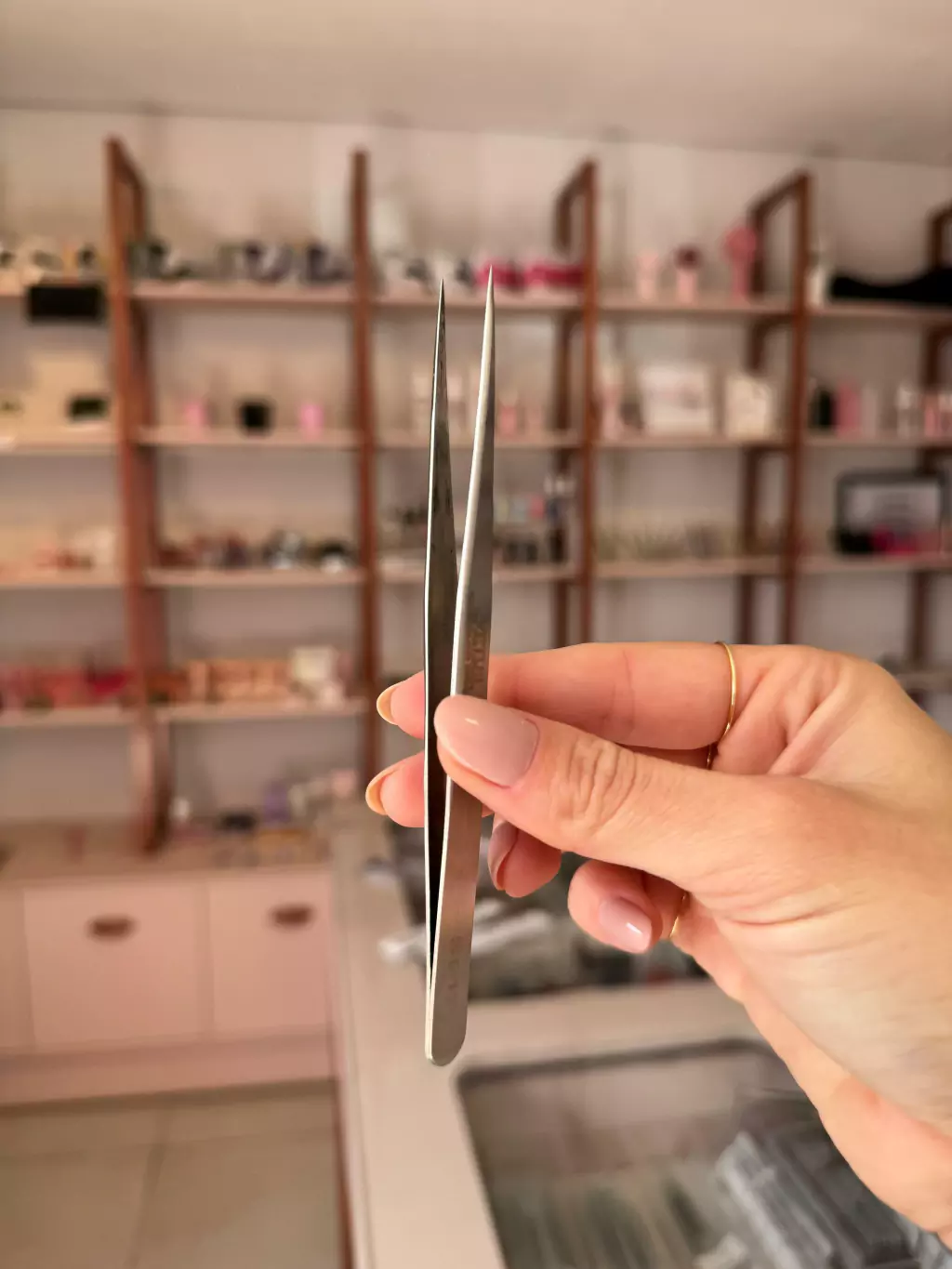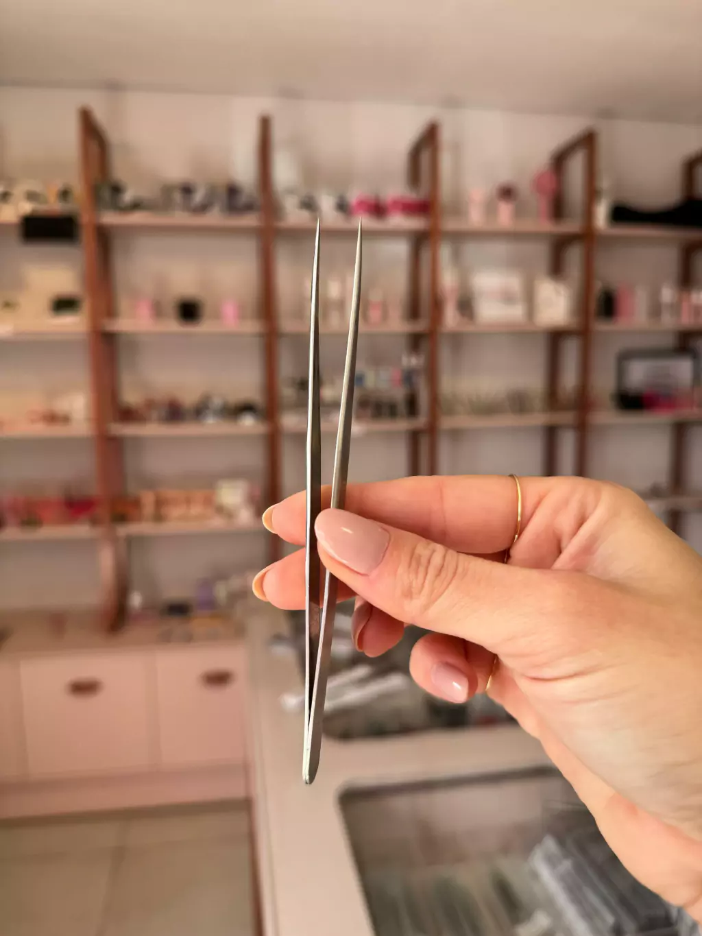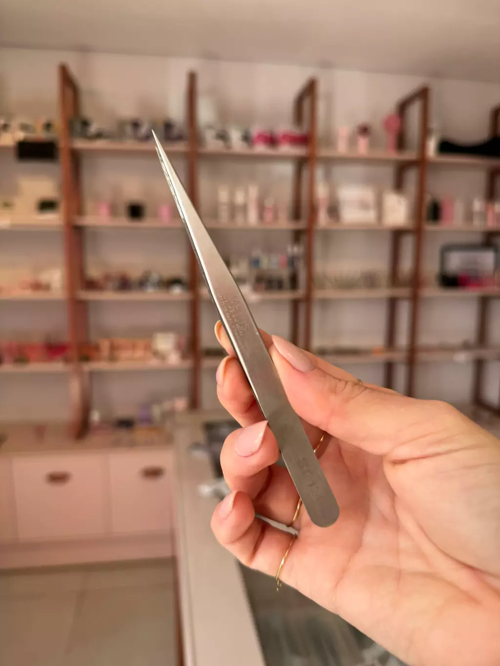 Pinça Ponta Reta oferece alta precisão por ter ponta super fina, possibilitando pinçar fios de pequena espessura, como os fios para volume russo.
