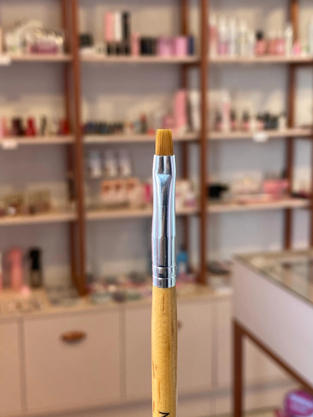 O pincel reto para unhas em gel serve para aplicar o gel nos cantos da unha natural, desde a base até o ponto de tensão. Também pode ser utilizado pra fazer decorações
