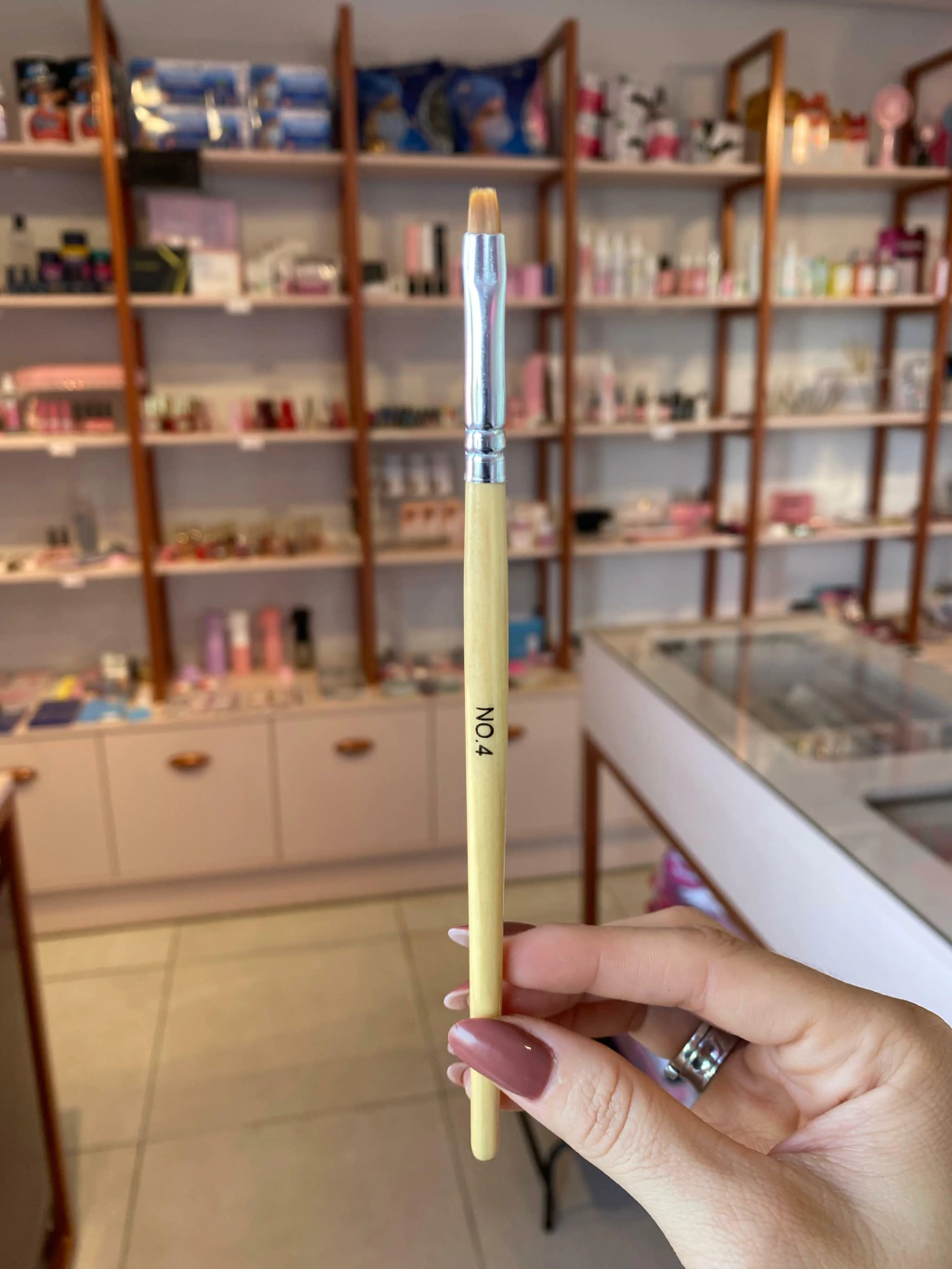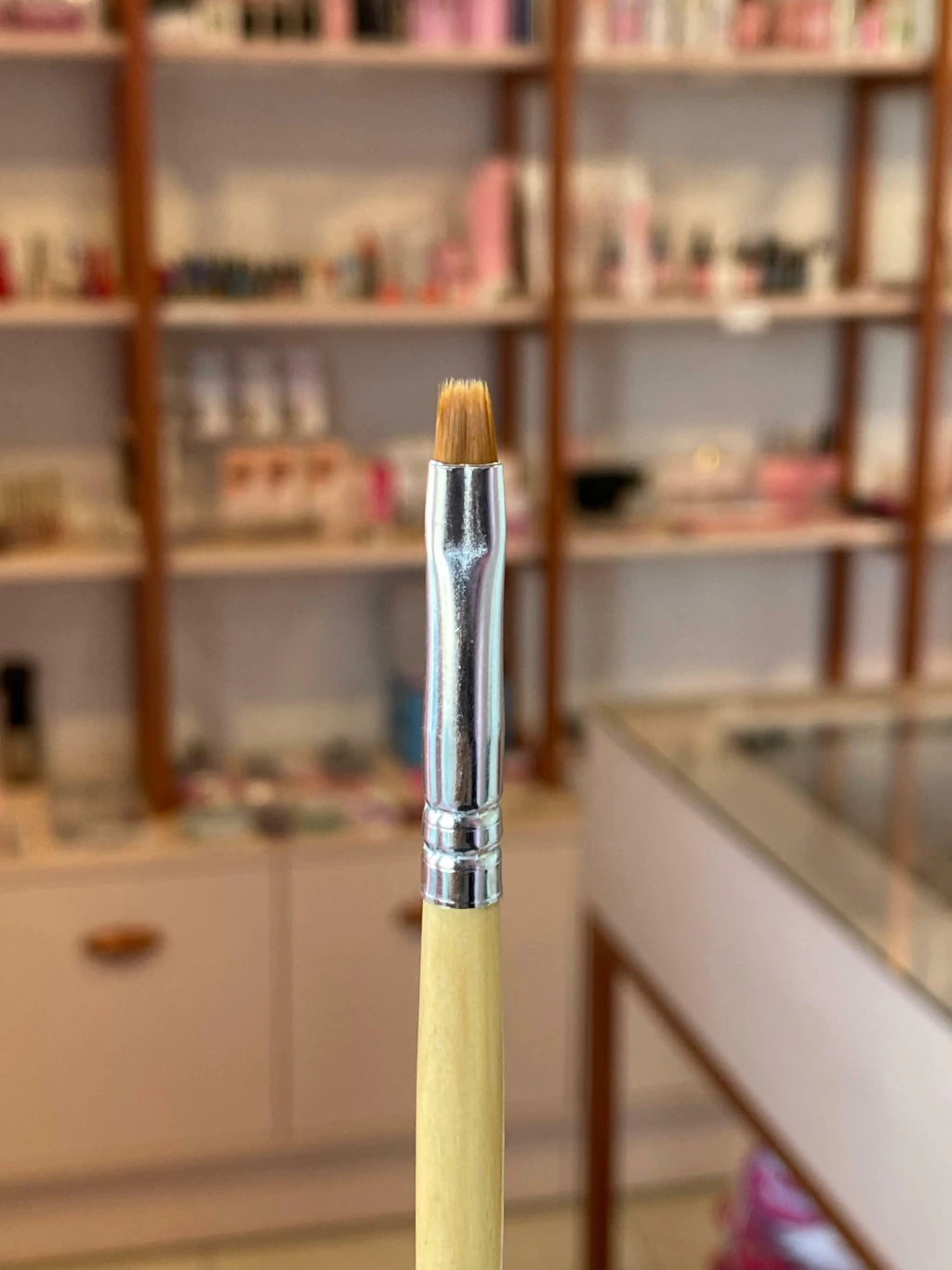 O pincel reto para unhas em gel serve para aplicar o gel nos cantos da unha natural, desde a base até o ponto de tensão. Também pode ser utilizado pra fazer decorações
