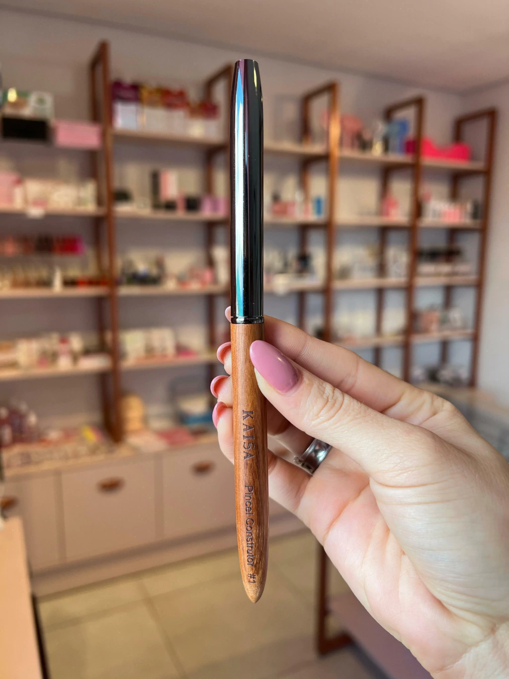 Pincel para Gel Cabo em madeira Kaisa Coleção Cabana para Unhas Alongamento Acrigel