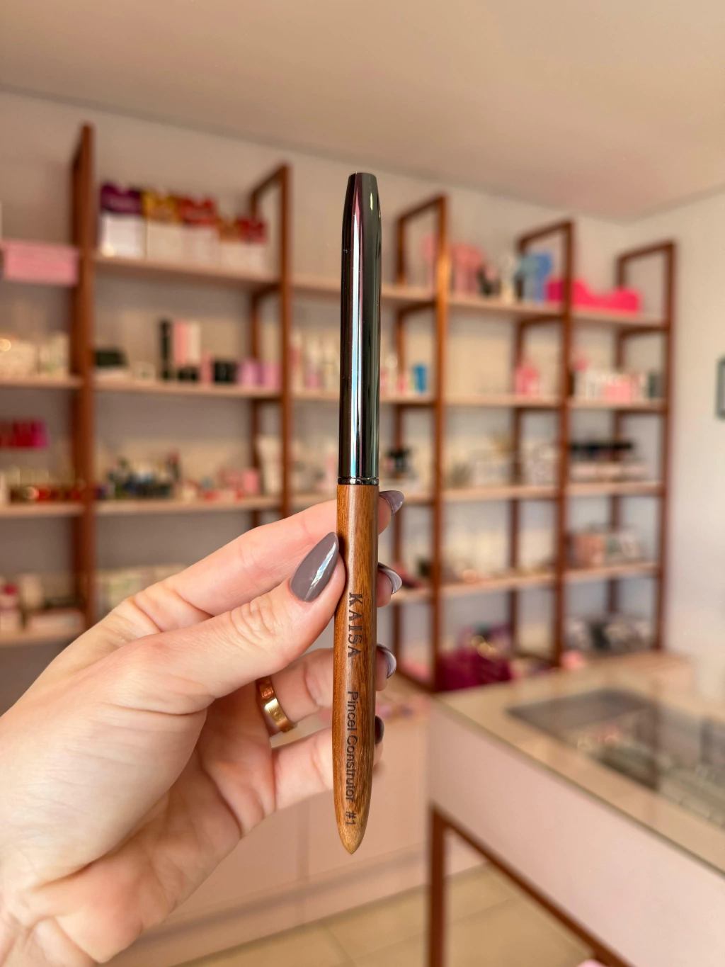 Pincel para gel com cabo de madeira, linha Cabana da Kaisa é a sofisticação e conforto na mesa das profissionais. Além de lindo, ele é extremamente confortável para o dia a dia.