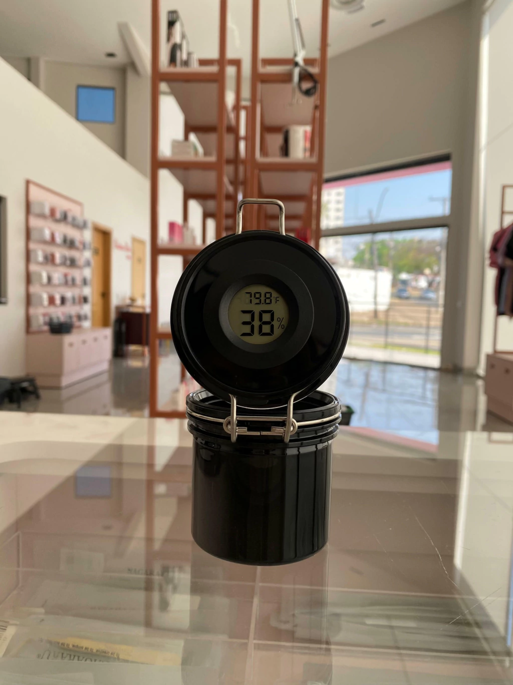 Esse modelo já vem com o higrômetro que auxilia na escolha do adesivo ideal para a sua umidade e temperatura.