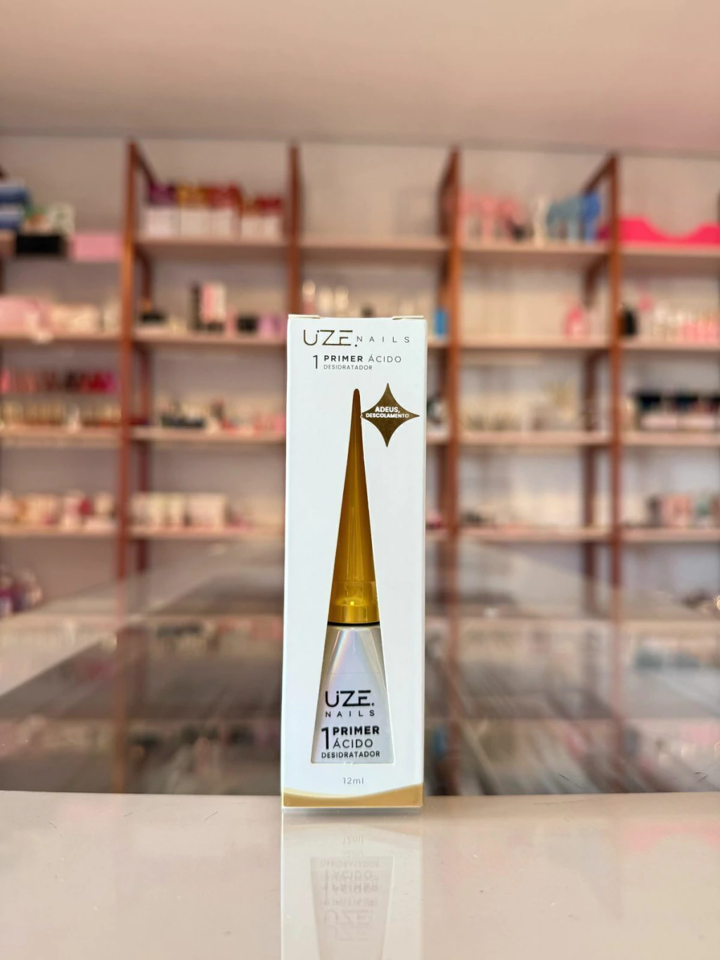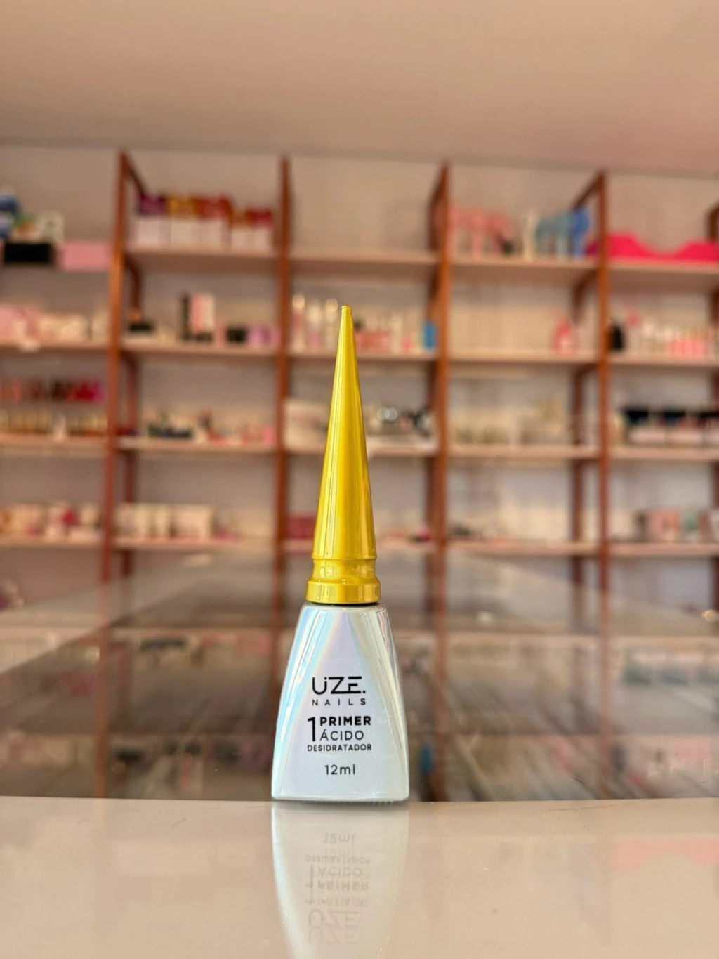 O primer ácido UZE Nails é uma solução preparadora para lâmina das unhas tem função de desidratar e criar uma barreira contra a oleosidade produzida pela matriz impedindo descolamentos e surgimento de doenças, ele reage com a queratina da unha tornando a mais aderente aos produtos tornando os um só corpo, indicado para todos os tipos de lâmina ou produto, Gel, Acrílico e poligel etc.