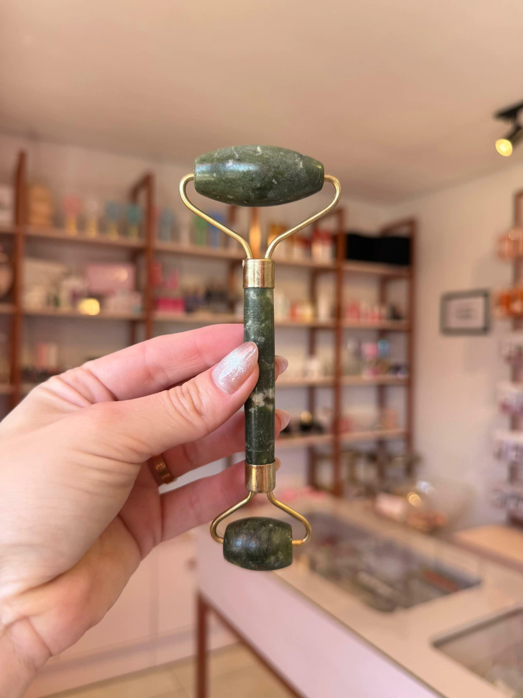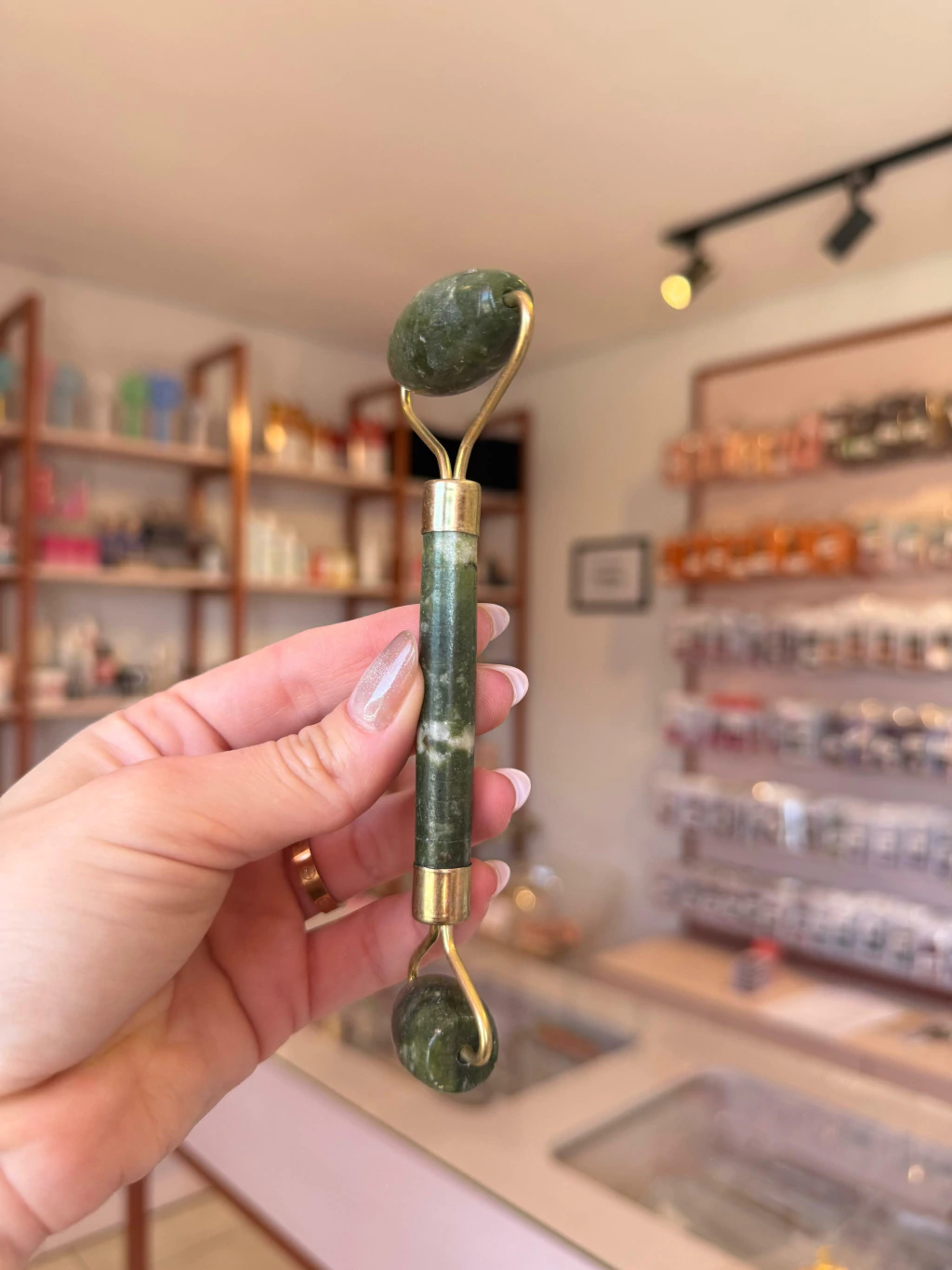 O rolinho de pedra jade é uma ferramenta de beleza atemporal, usada há séculos para promover a saúde da pele. Ao rolar suavemente sobre o rosto, ajuda a estimular a circulação sanguínea, promover a drenagem linfática e reduzir o inchaço. Além disso, pode ajudar a suavizar as rugas e linhas finas, dando à sua pele um aspecto mais jovem e radiante.