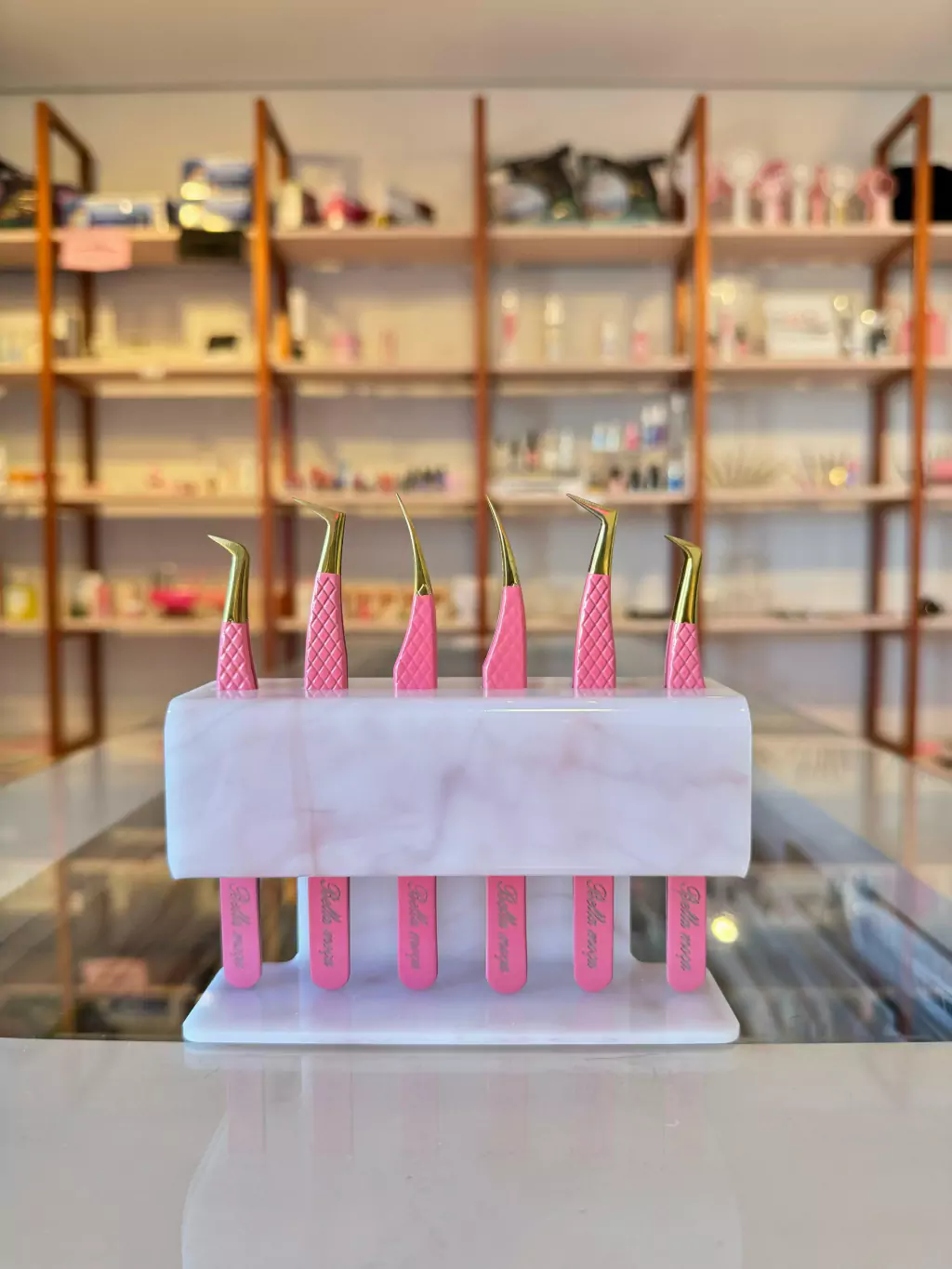 Expositor para pinças é ideal para organizar diferentes tipos de pinças, desde as pinças de alongamento e extensão de cílios que são mais longas, assim como as pinças tradicionais de designer de sobrancelhas.