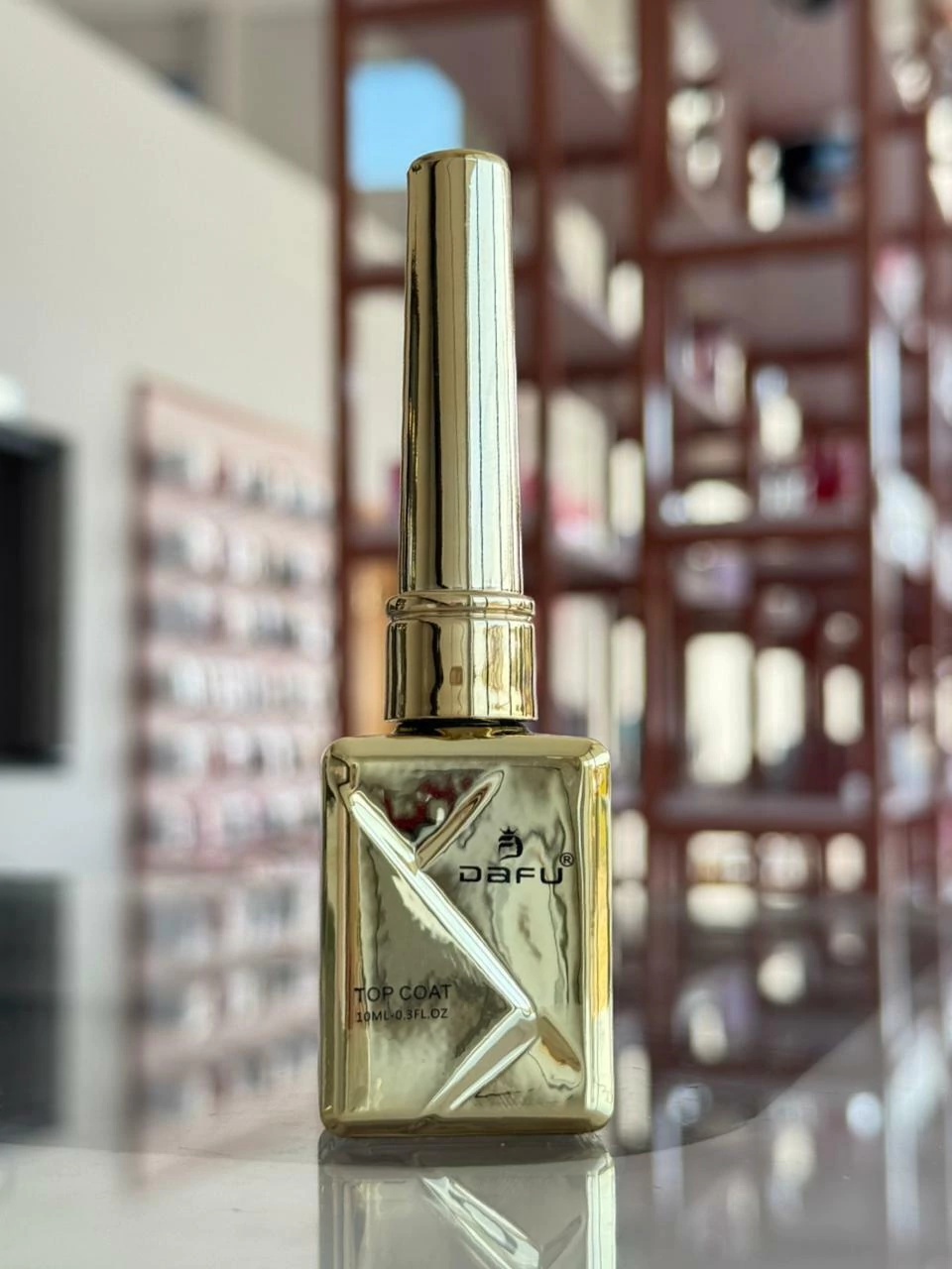 MODO DE USAR: Após o esmalte em gel estar seco, aplicar uma camada do TOP COAT DAFU nas unhas e coloca-las na cabine para secar por 2 minutos.