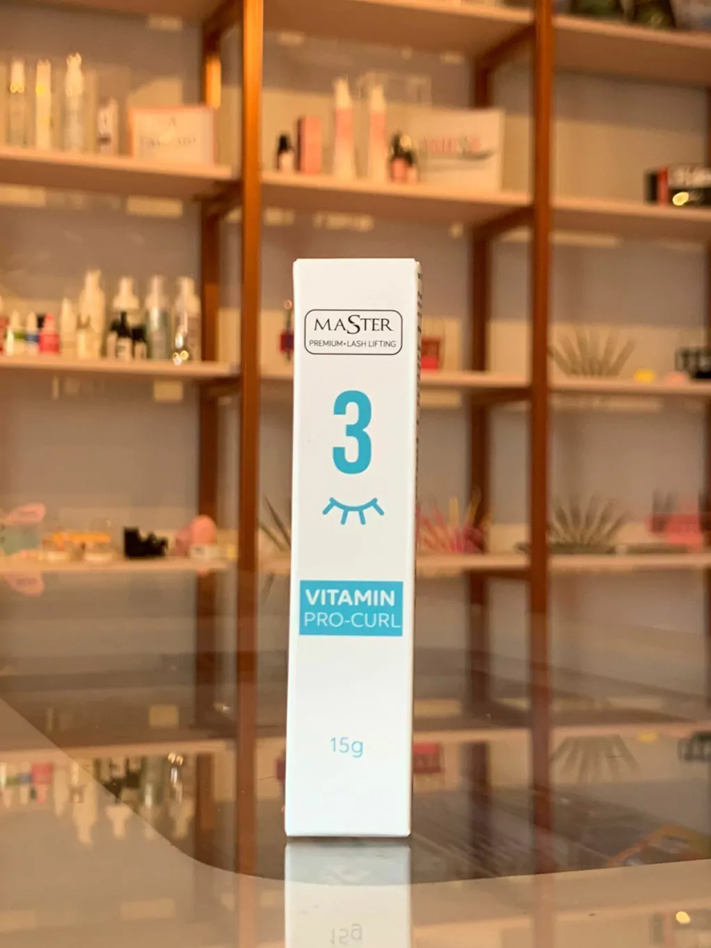 - 1 Vitamin Master-Curl: contém ingredientes especiais que ajudam a nutrir e fortalecer os cílios depois do procedimento de lifting